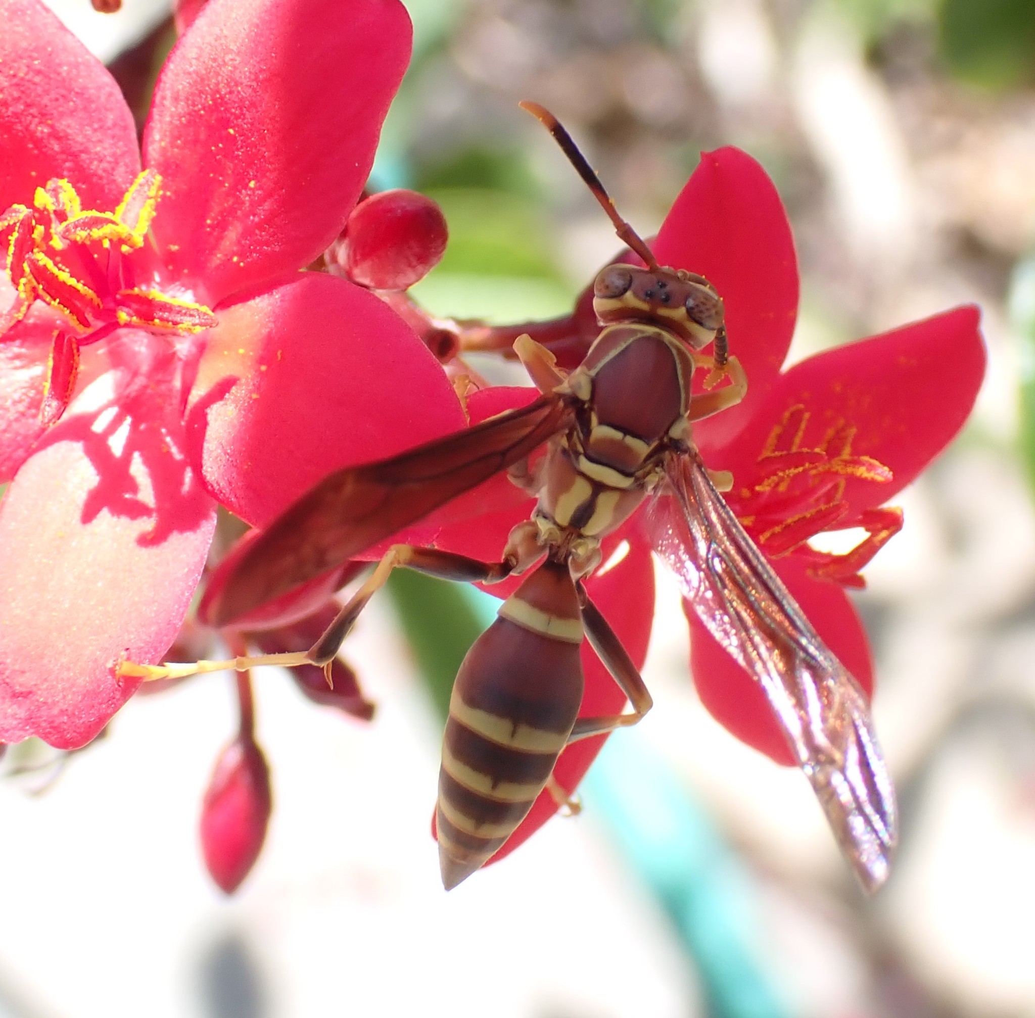 Polistes exclamans | species | Jatropha integerrima | species | visits | Animalia | Arthropoda | Insecta | Hymenoptera | Eumenidae | Polistes | Plantae | Tracheophyta | Magnoliopsida | Malpighiales | Euphorbiaceae | Jatropha | 27.438212 | -82.684005 | 2021 | 3 | 28 | http://creativecommons.org/licenses/by-nc/4.0/ | https://www.inaturalist.org/observations/72302725 | |