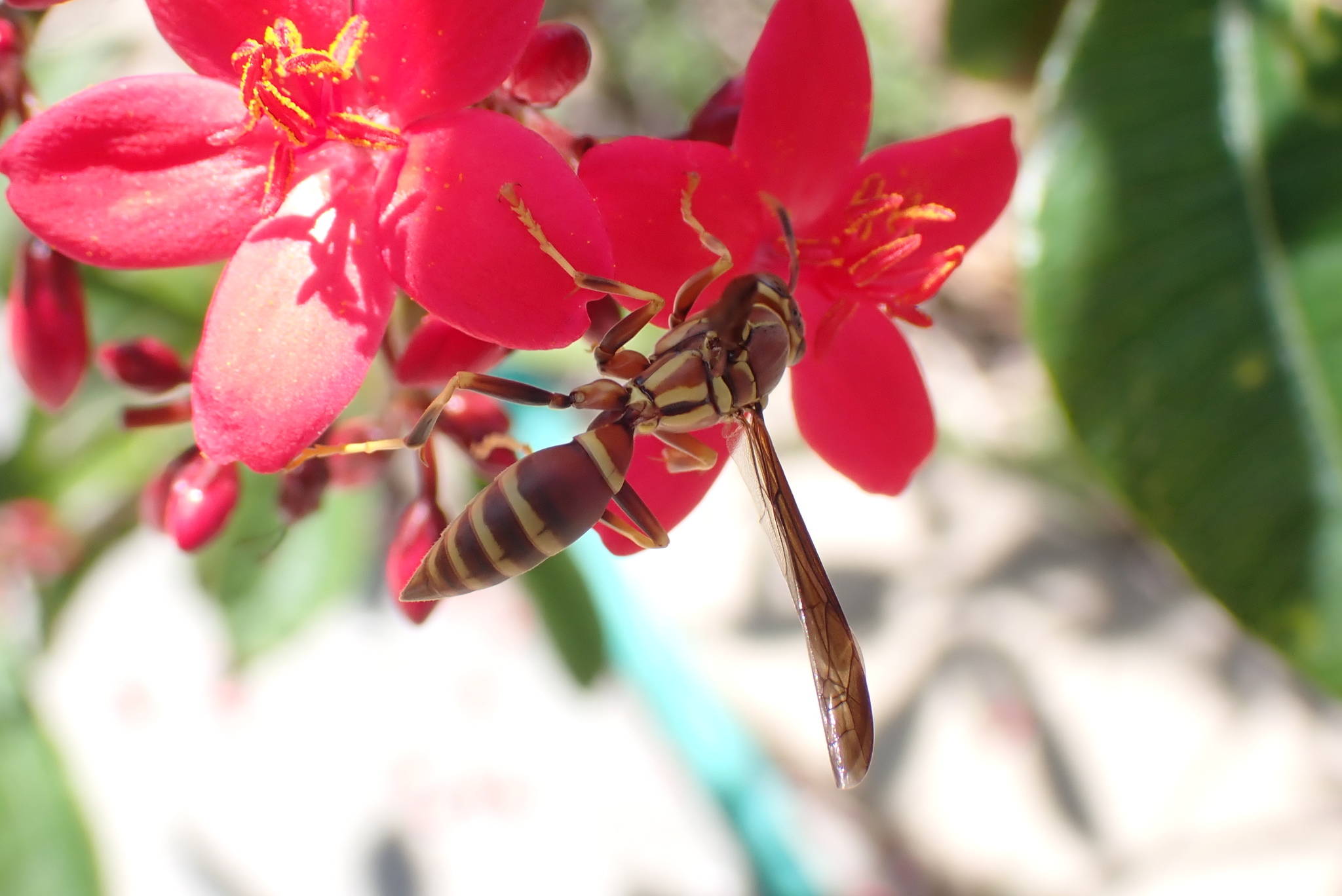 Polistes exclamans | species | Jatropha integerrima | species | interactsWith | Animalia | Arthropoda | Insecta | Hymenoptera | Eumenidae | Polistes | Plantae | Tracheophyta | Magnoliopsida | Malpighiales | Euphorbiaceae | Jatropha | 27.438212 | -82.684005 | 2021 | 3 | 28 | http://creativecommons.org/licenses/by-nc/4.0/ | https://www.inaturalist.org/observations/72302725 | |