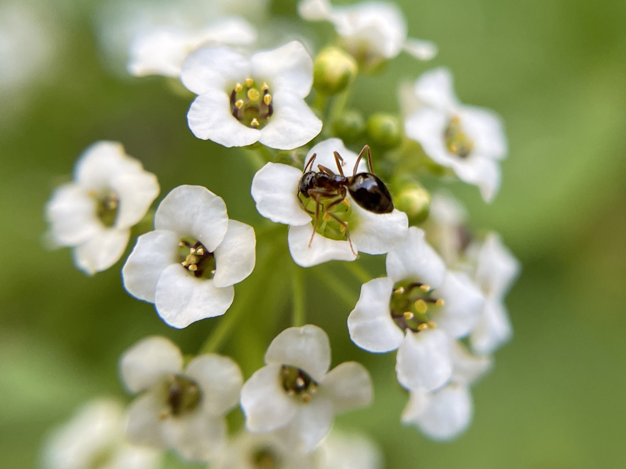 Prenolepis imparis | species | Lobularia maritima | species | visitsFlowersOf | Animalia | Arthropoda | Insecta | Hymenoptera | Formicidae | Prenolepis | Plantae | Tracheophyta | Magnoliopsida | Brassicales | Brassicaceae | Lobularia | 37.246563 | -121.781946 | 2021 | 3 | 27 | http://creativecommons.org/publicdomain/zero/1.0/ | https://www.inaturalist.org/observations/72305278 | |