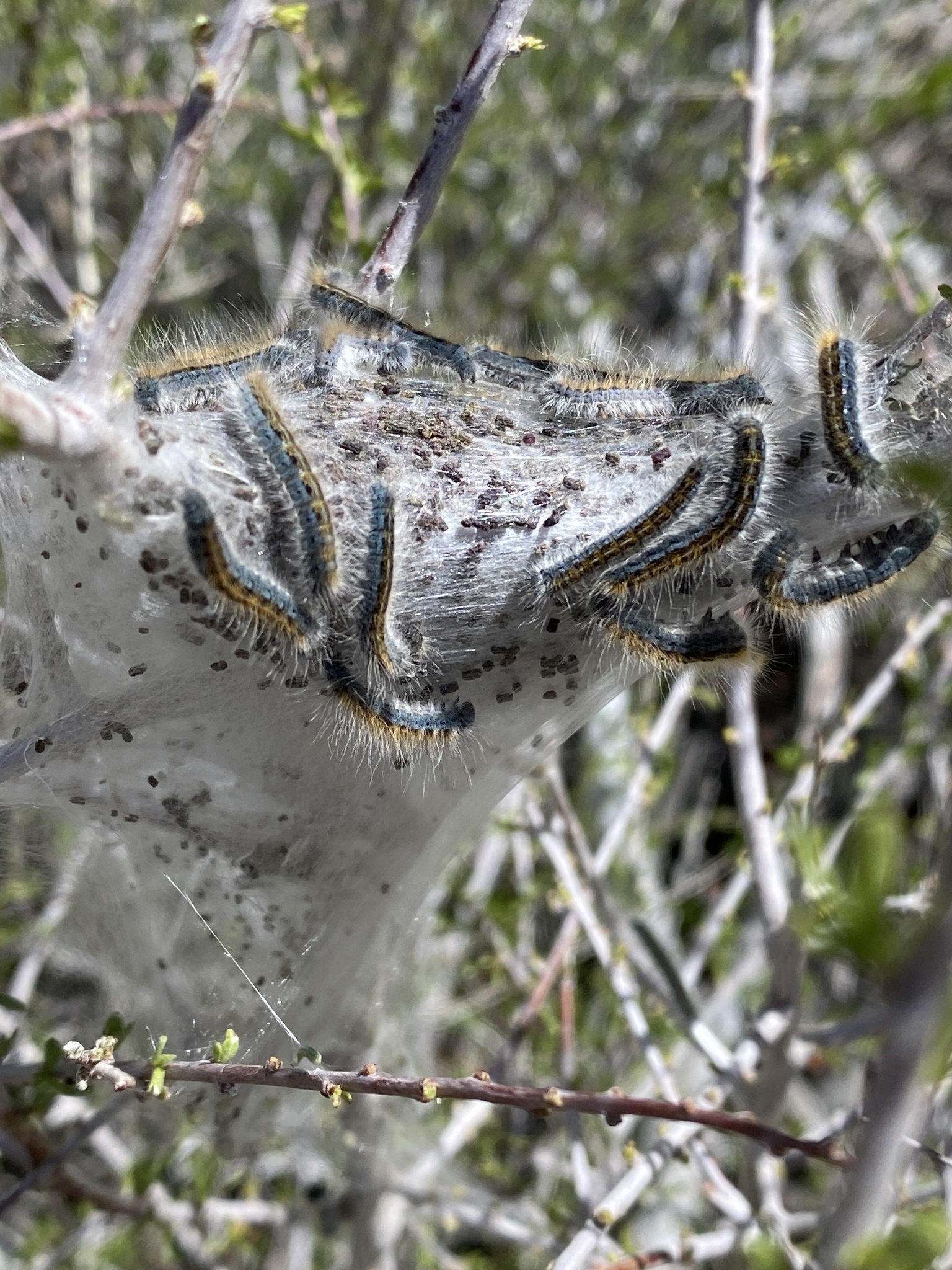 Malacosoma californica | species | Prunus fasciculata | species | hasHost | Animalia | Arthropoda | Insecta | Lepidoptera | Lasiocampidae | Malacosoma | Plantae | Tracheophyta | Magnoliopsida | Rosales | Rosaceae | Prunus | 33.99422 | -116.0606 | 2021 | 3 | 27 | http://creativecommons.org/licenses/by-nc/4.0/ | https://www.inaturalist.org/observations/72266785 | |