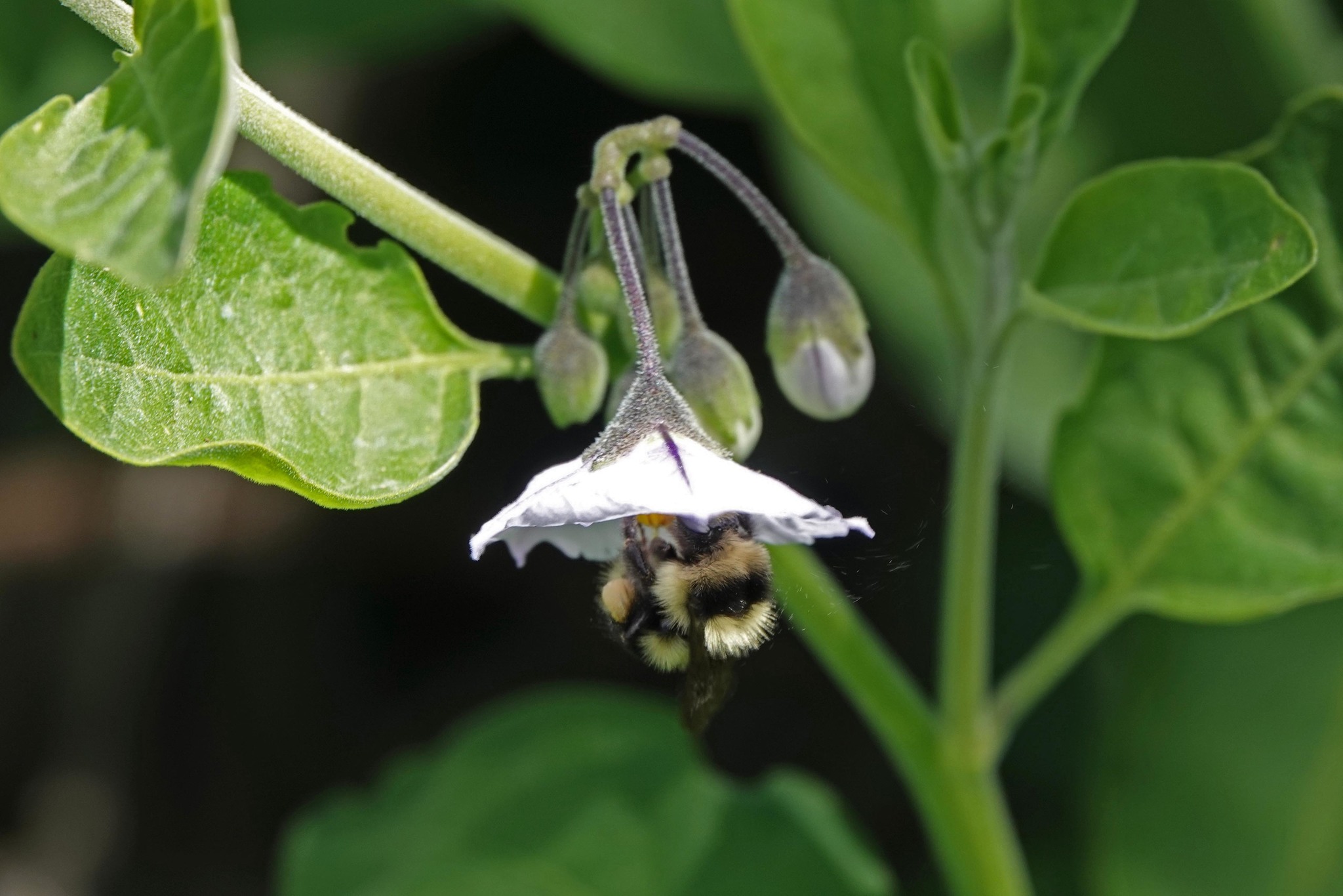 Bombus melanopygus | species | Solanum | genus | visitsFlowersOf | Animalia | Arthropoda | Insecta | Hymenoptera | Apidae | Bombus | Plantae | Tracheophyta | Magnoliopsida | Solanales | Solanaceae | Solanum | 37.073012 | -121.531081 | 2021 | 3 | 27 | http://creativecommons.org/licenses/by-nc/4.0/ | https://www.inaturalist.org/observations/72277342 | |