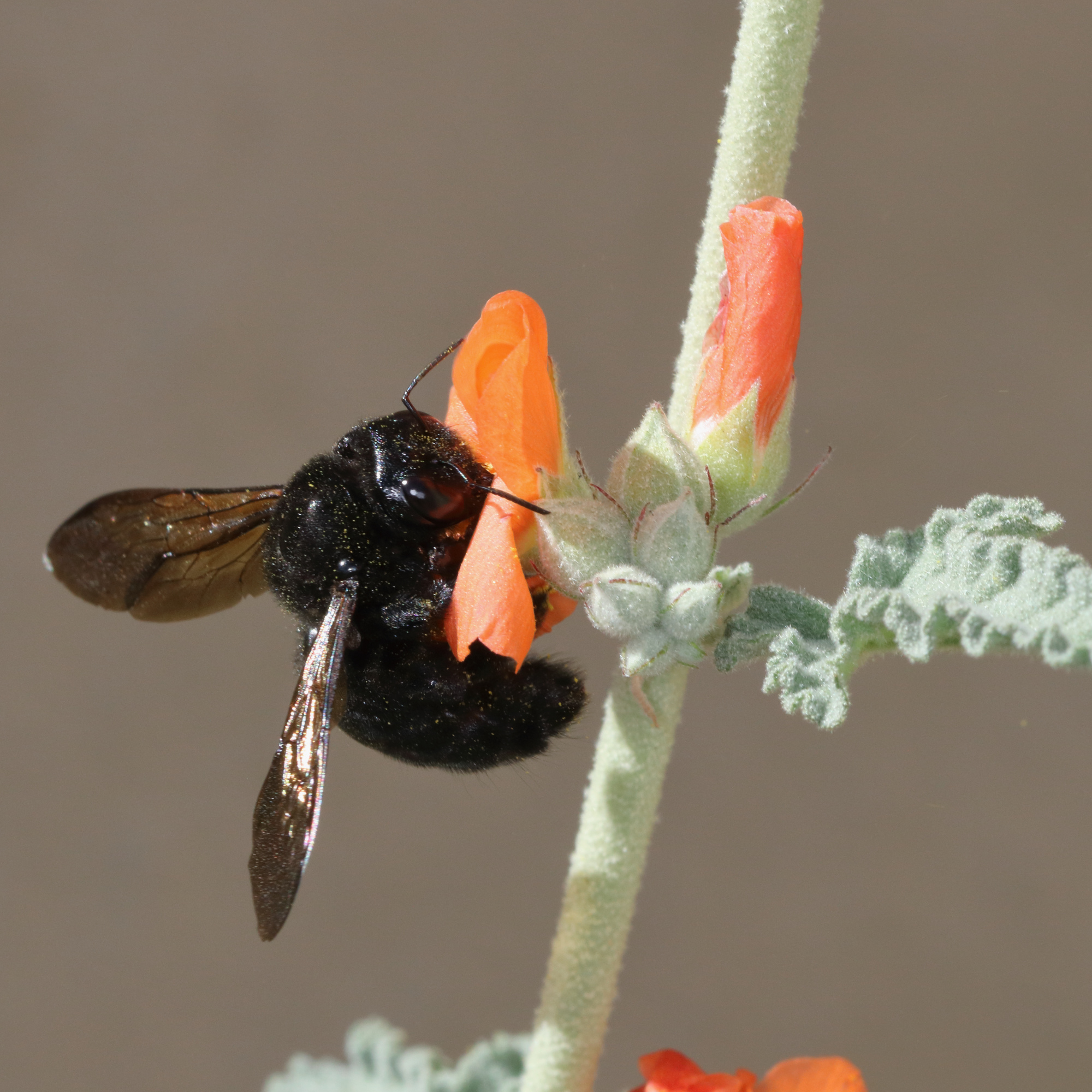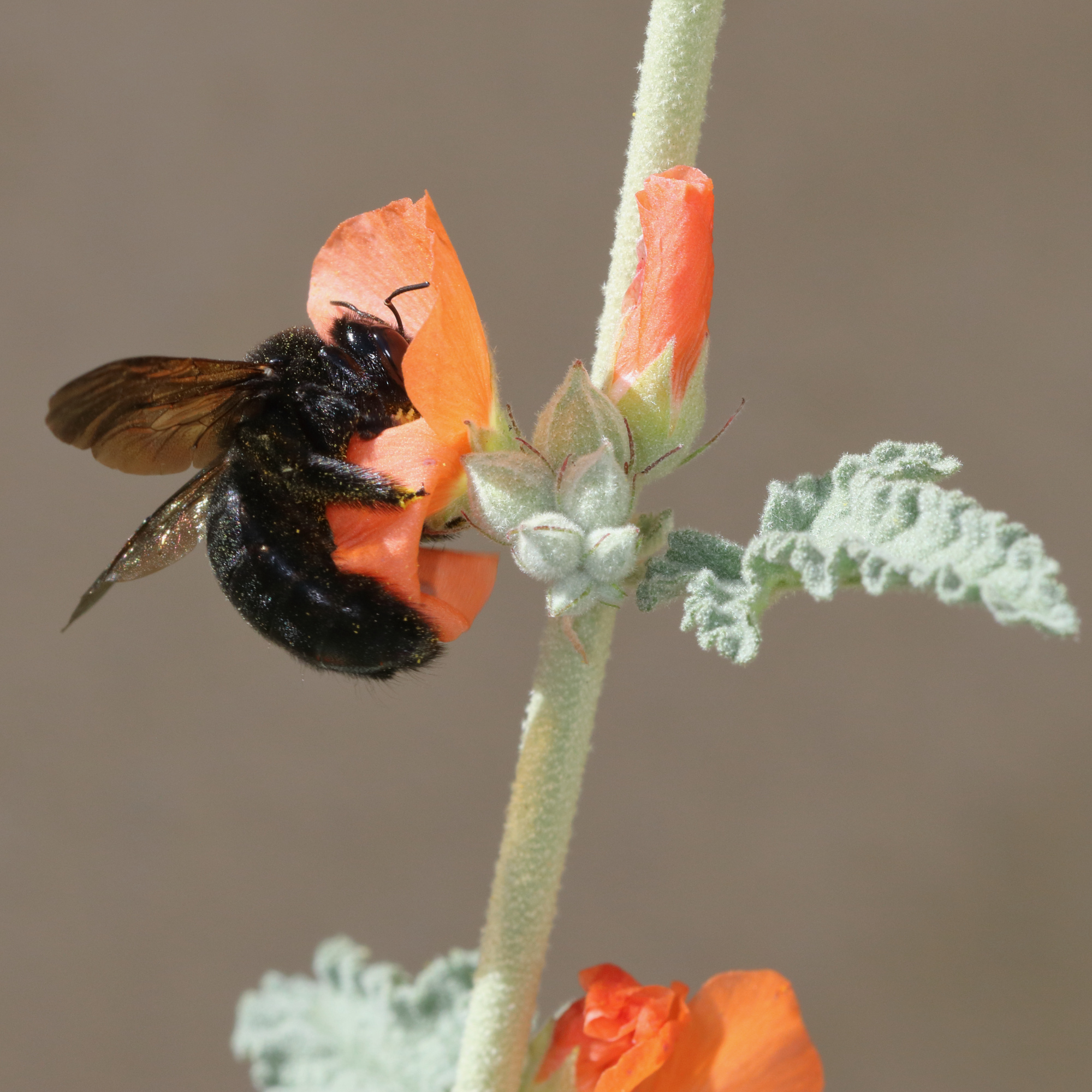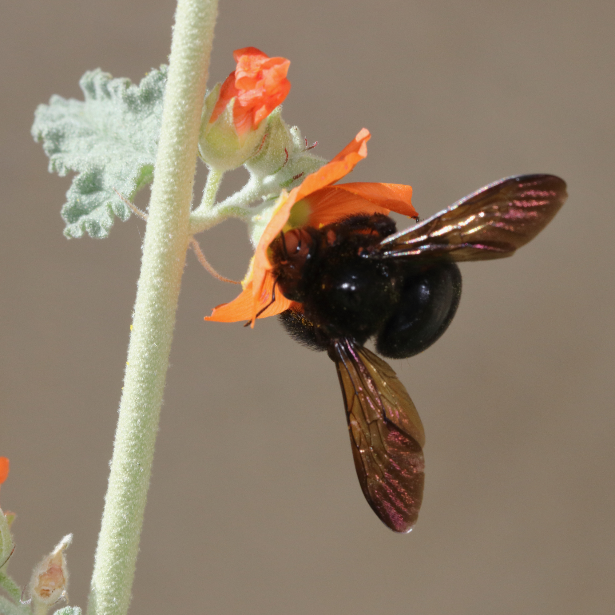 Xylocopa sonorina | species | Sphaeralcea ambigua | species | eats | Animalia | Arthropoda | Insecta | Hymenoptera | Apidae | Xylocopa | Plantae | Tracheophyta | Magnoliopsida | Malvales | Malvaceae | Sphaeralcea | 37.381721 | -122.027252 | 2021 | 3 | 27 | http://creativecommons.org/licenses/by-nc/4.0/ | https://www.inaturalist.org/observations/72210622 | |
