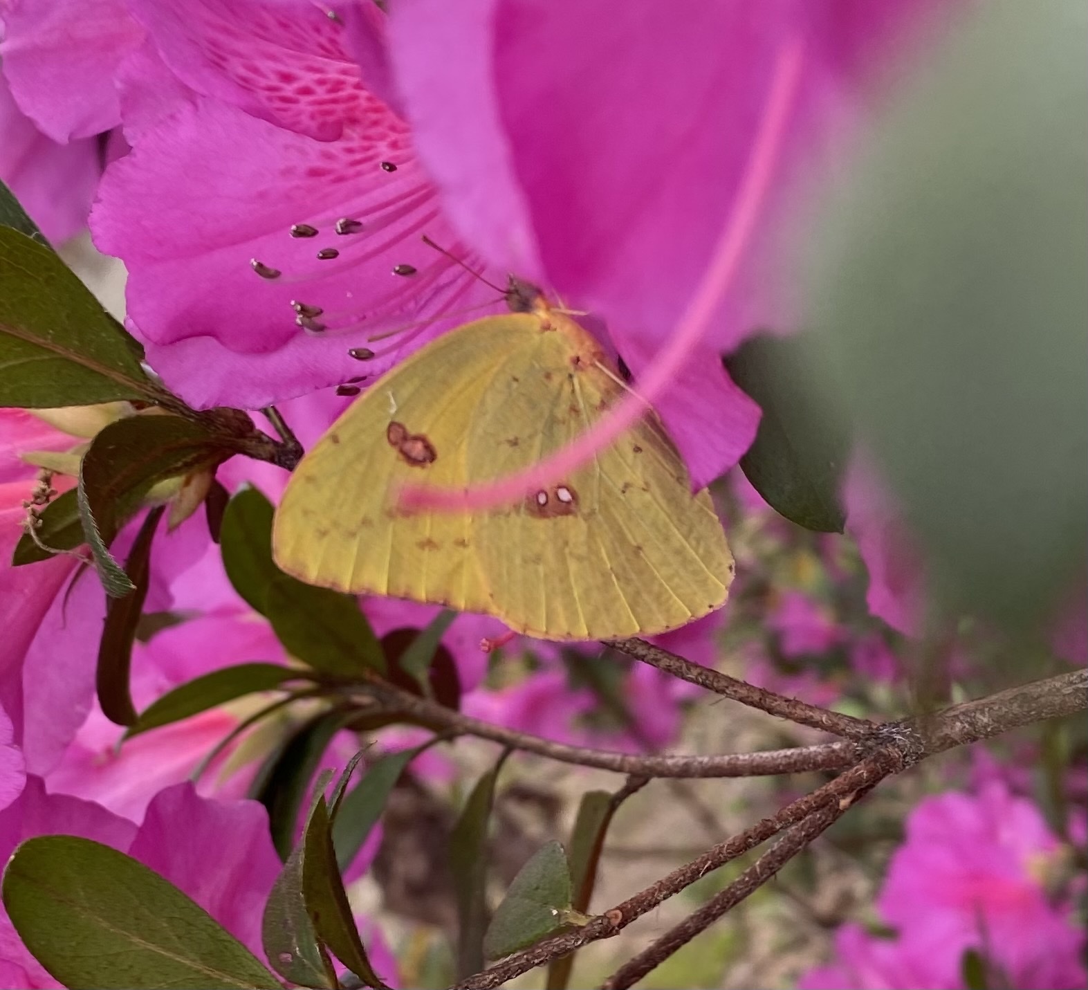 Phoebis sennae | species | Rhododendron | genus | interactsWith | Animalia | Arthropoda | Insecta | Lepidoptera | Pieridae | Phoebis | Plantae | Tracheophyta | Magnoliopsida | Ericales | Ericaceae | Rhododendron | 31.568456 | -89.000477 | 2021 | 3 | 27 | http://creativecommons.org/licenses/by-nc/4.0/ | https://www.inaturalist.org/observations/72211092 | |