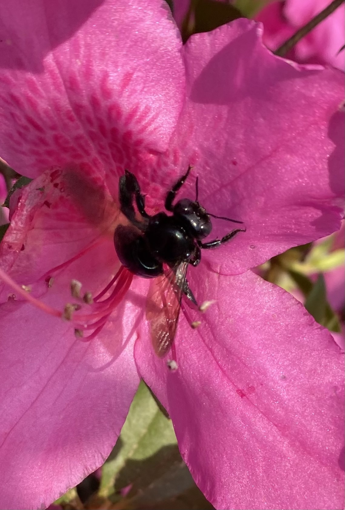 Xylocopa micans | species | Rhododendron | genus | interactsWith | Animalia | Arthropoda | Insecta | Hymenoptera | Apidae | Xylocopa | Plantae | Tracheophyta | Magnoliopsida | Ericales | Ericaceae | Rhododendron | 31.577572 | -89.198469 | 2021 | 3 | 27 | http://creativecommons.org/licenses/by-nc/4.0/ | https://www.inaturalist.org/observations/72218221 | |