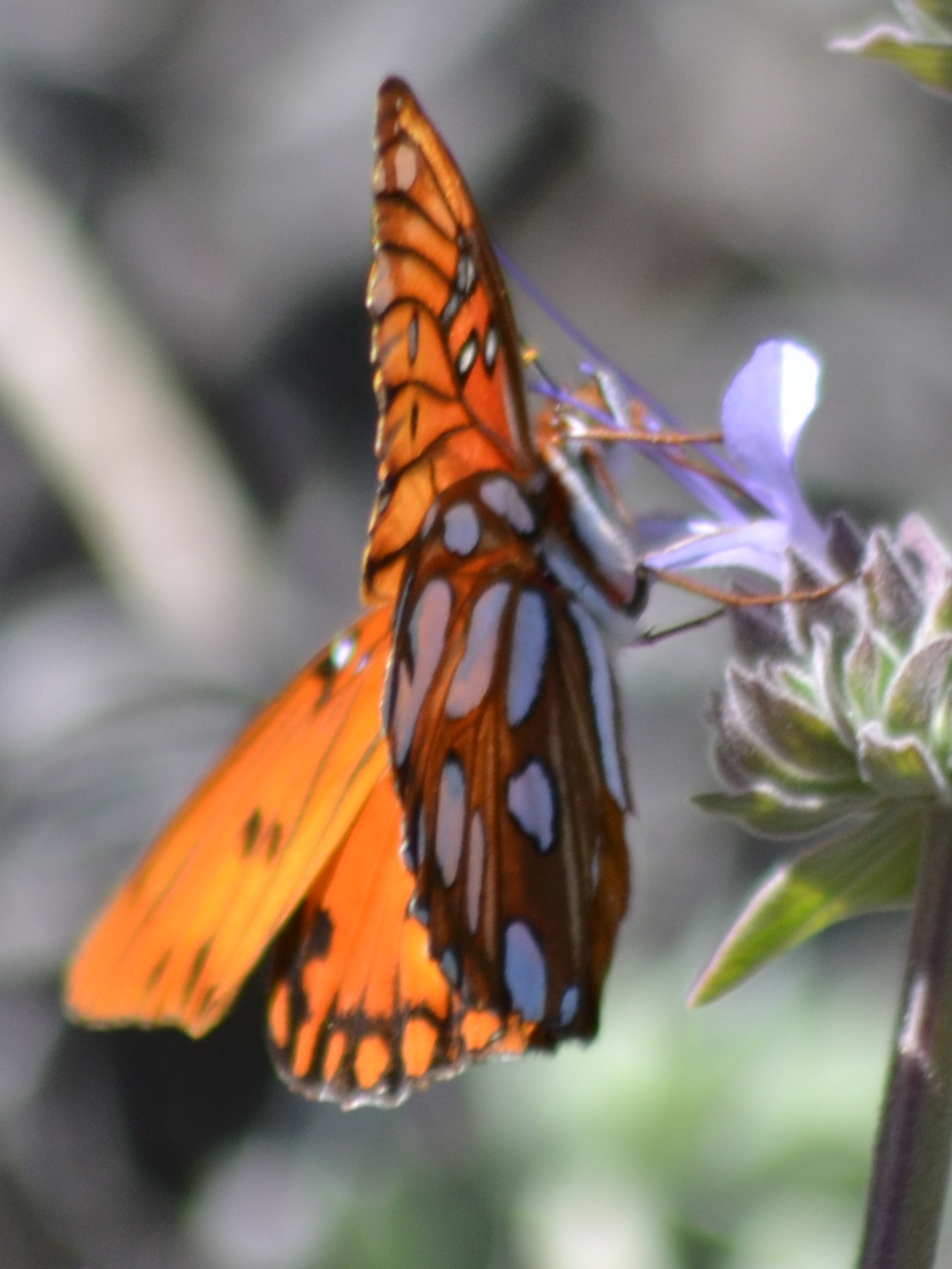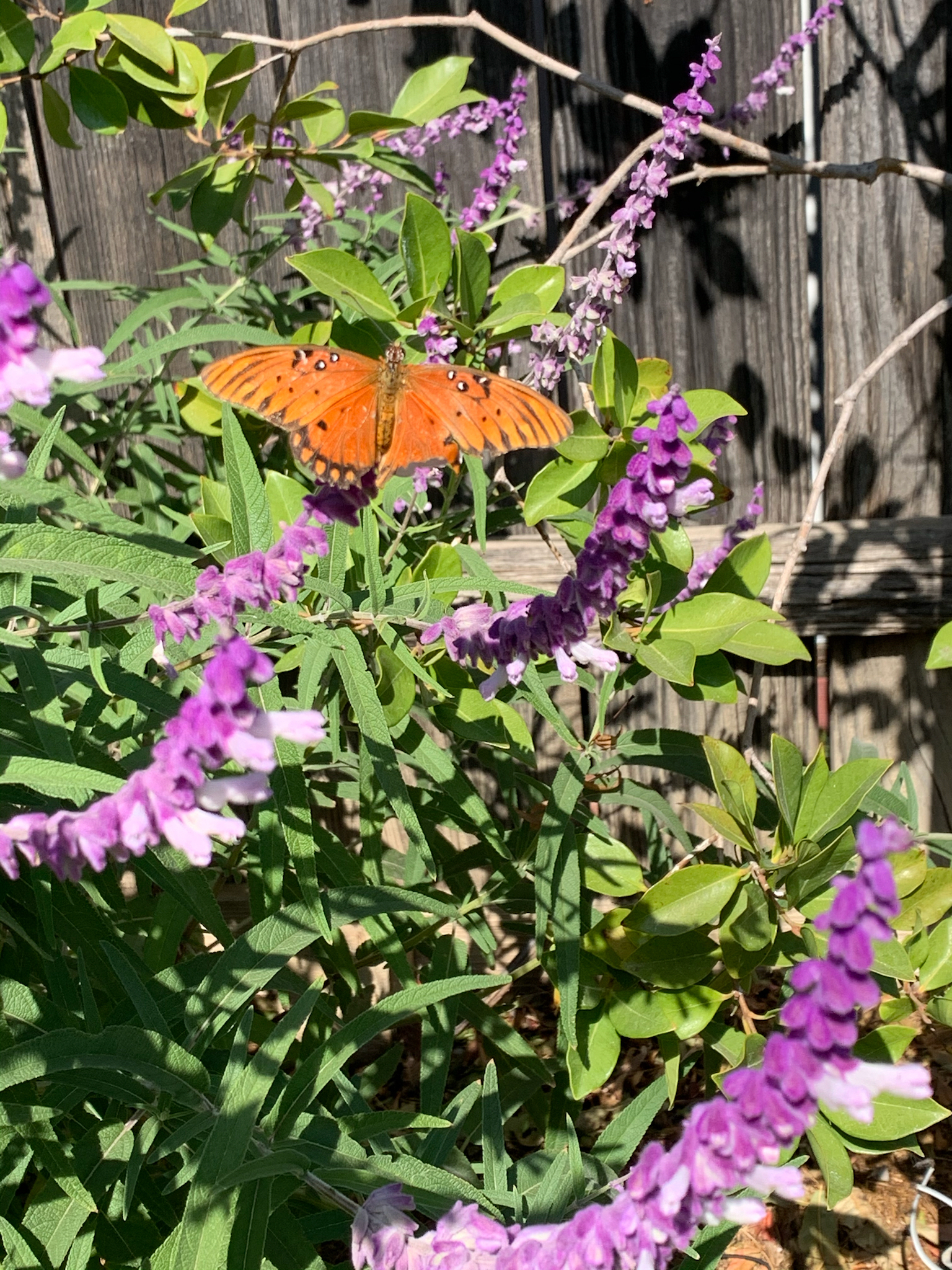 Dione vanillae | species | Salvia leucantha | species | visitsFlowersOf | Animalia | Arthropoda | Insecta | Lepidoptera | Nymphalidae | Dione | Plantae | Tracheophyta | Magnoliopsida | Lamiales | Lamiaceae | Salvia | 38.251911 | -122.025894 | 2020 | 10 | 30 | http://creativecommons.org/licenses/by-nc/4.0/ | https://www.inaturalist.org/observations/72060212 | |
