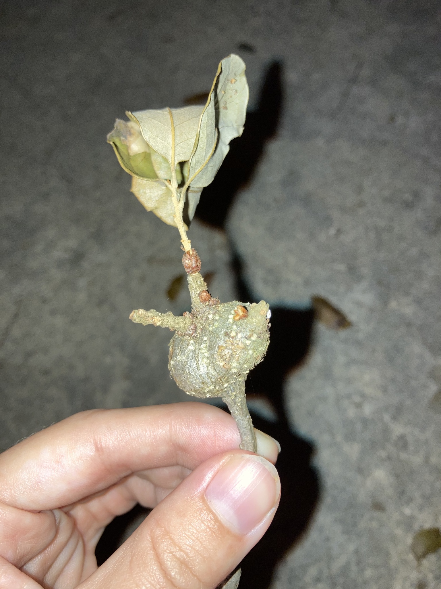 Callirhytis | genus | Quercus marilandica | species | interactsWith | Animalia | Arthropoda | Insecta | Hymenoptera | Cynipidae | Callirhytis | Plantae | Tracheophyta | Magnoliopsida | Fagales | Fagaceae | Quercus | 32.314001 | -95.248489 | 2021 | 3 | 25 | http://creativecommons.org/licenses/by/4.0/ | https://www.inaturalist.org/observations/72052581 | |