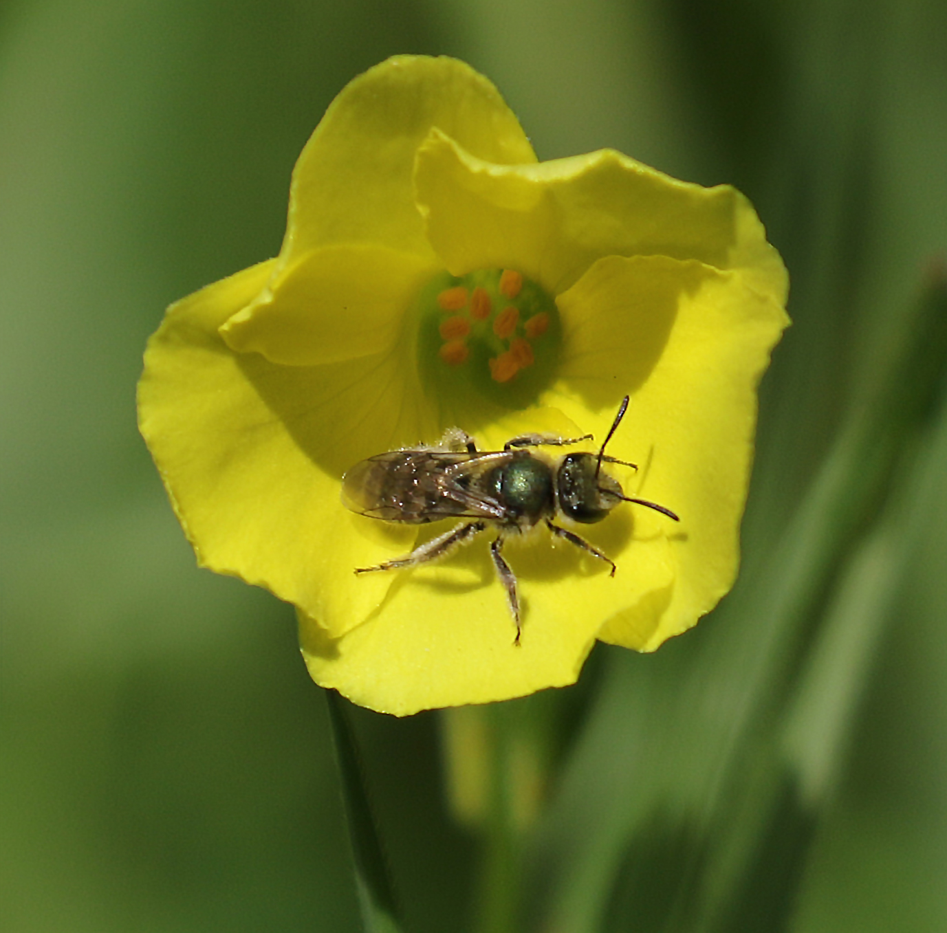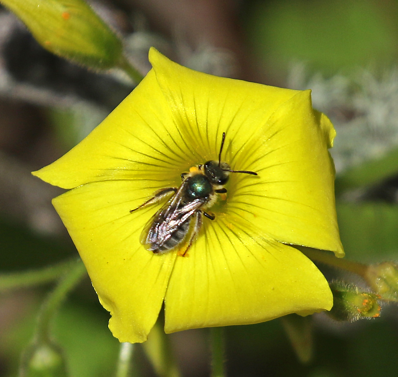 Lasioglossum pavonotum | species | Oxalis | genus | eats | Animalia | Arthropoda | Insecta | Hymenoptera | Halictidae | Lasioglossum | Plantae | Tracheophyta | Magnoliopsida | Oxalidales | Oxalidaceae | Oxalis | 37.619163 | -122.47531 | 2021 | 3 | 24 | http://creativecommons.org/licenses/by-nc/4.0/ | https://www.inaturalist.org/observations/72063556 | |