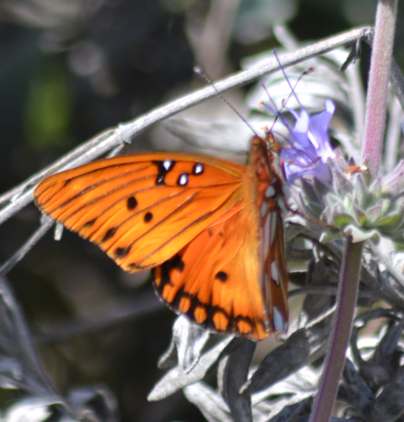 Dione vanillae | species | Salvia leucophylla | species | eats | Animalia | Arthropoda | Insecta | Lepidoptera | Nymphalidae | Dione | Plantae | Tracheophyta | Magnoliopsida | Lamiales | Lamiaceae | Salvia | 38.052406 | -122.226711 | 2021 | 3 | 24 | http://creativecommons.org/licenses/by-nc/4.0/ | https://www.inaturalist.org/observations/71988310 | |