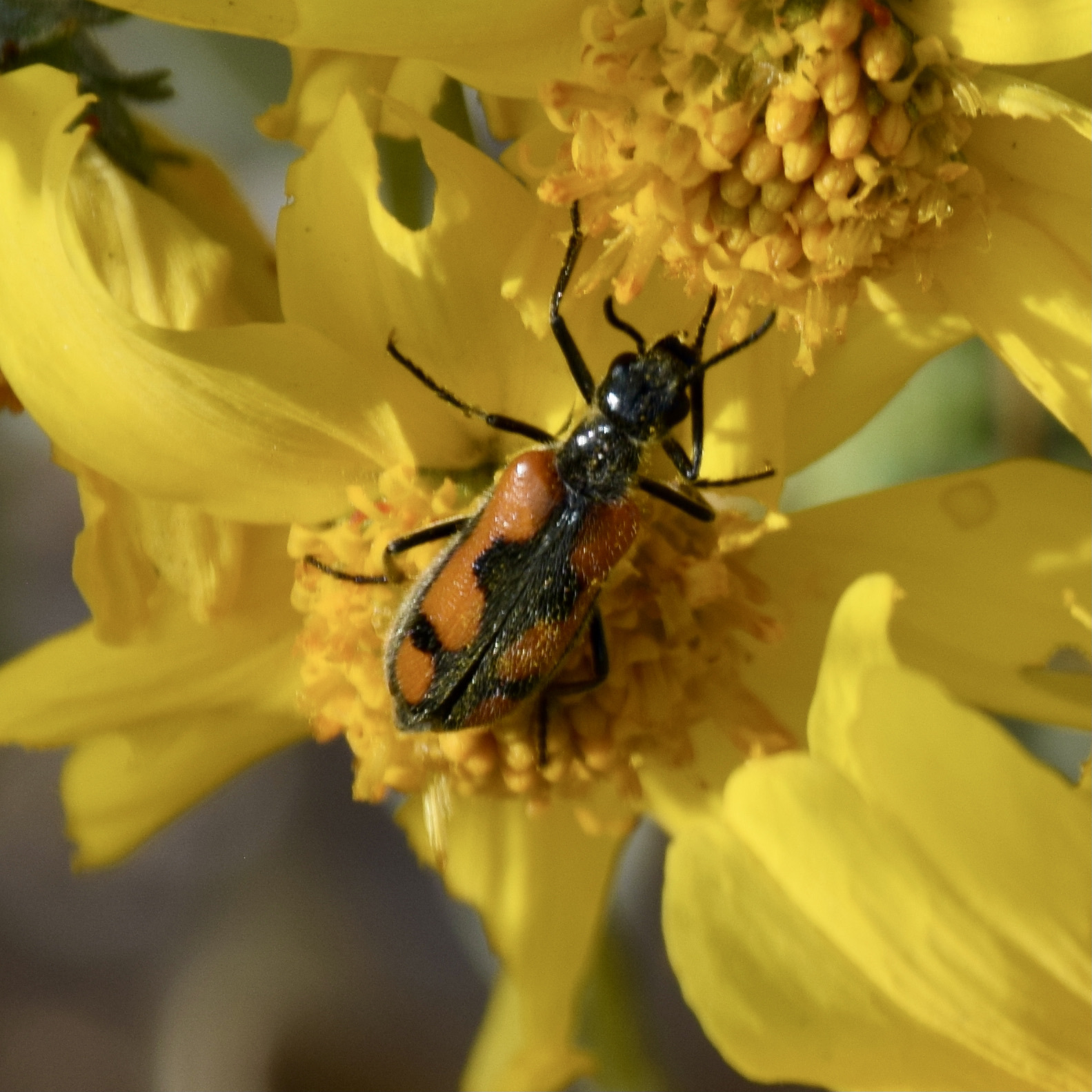 Eupompha elegans | species | Encelia farinosa | species | visitsFlowersOf | Animalia | Arthropoda | Insecta | Coleoptera | Meloidae | Eupompha | Plantae | Tracheophyta | Magnoliopsida | Asterales | Asteraceae | Encelia | 33.765187 | -116.367934 | 2021 | 3 | 24 | http://creativecommons.org/licenses/by-nc/4.0/ | https://www.inaturalist.org/observations/71995342 | |