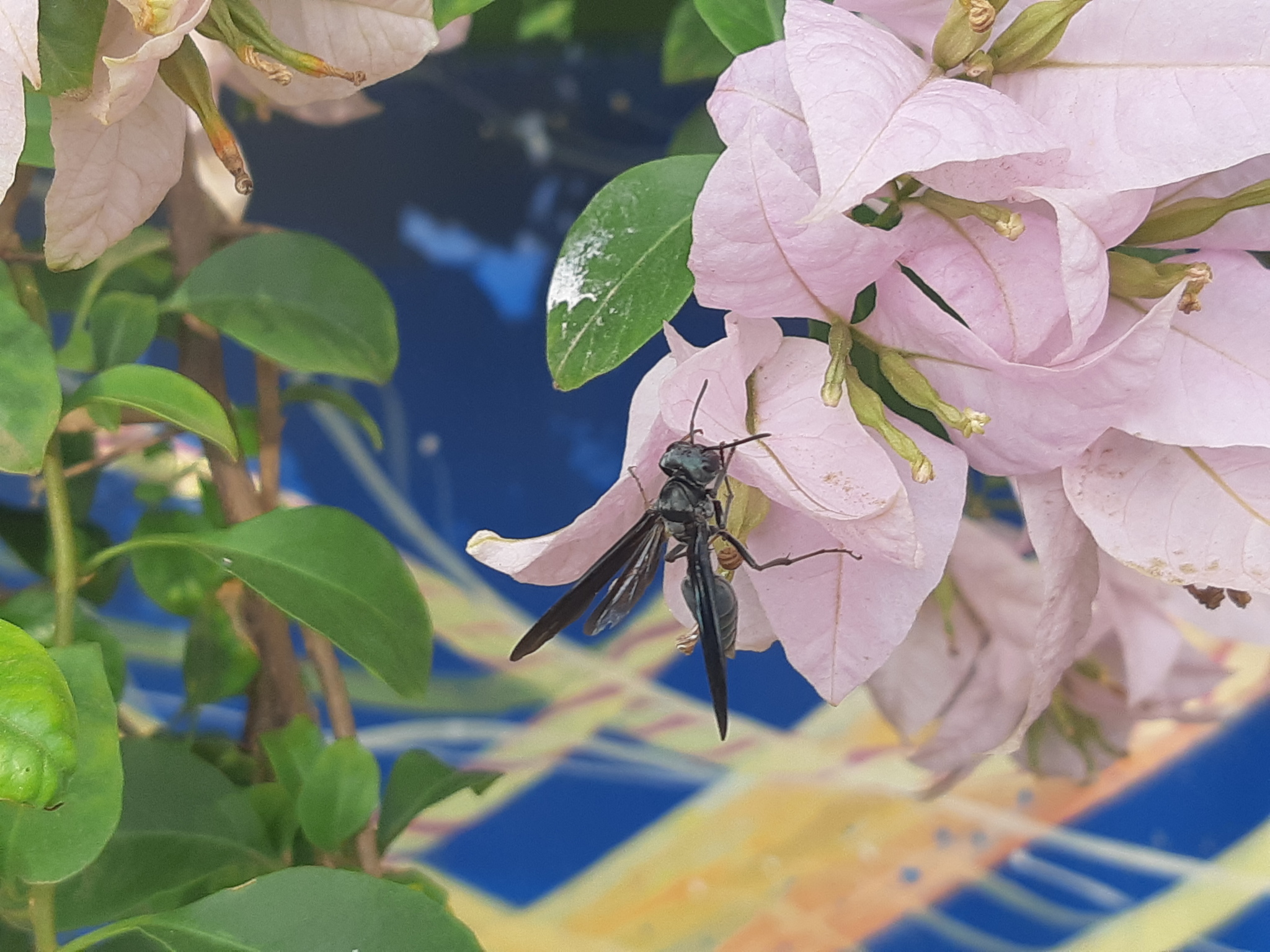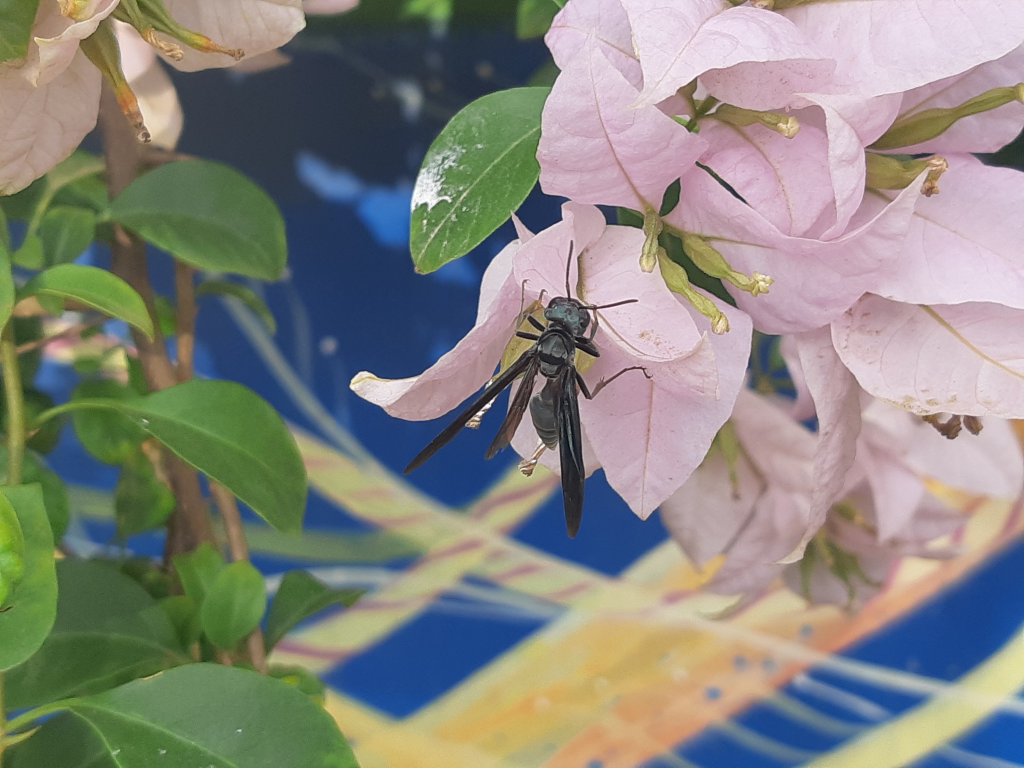 Synoeca septentrionalis | species | Bougainvillea | genus | visitsFlowersOf | Animalia | Arthropoda | Insecta | Hymenoptera | Vespidae | Synoeca | Plantae | Tracheophyta | Magnoliopsida | Caryophyllales | Nyctaginaceae | Bougainvillea | -1.549265 | -80.810592 | 2021 | 3 | 19 | http://creativecommons.org/licenses/by/4.0/ | https://www.inaturalist.org/observations/71924260 | |