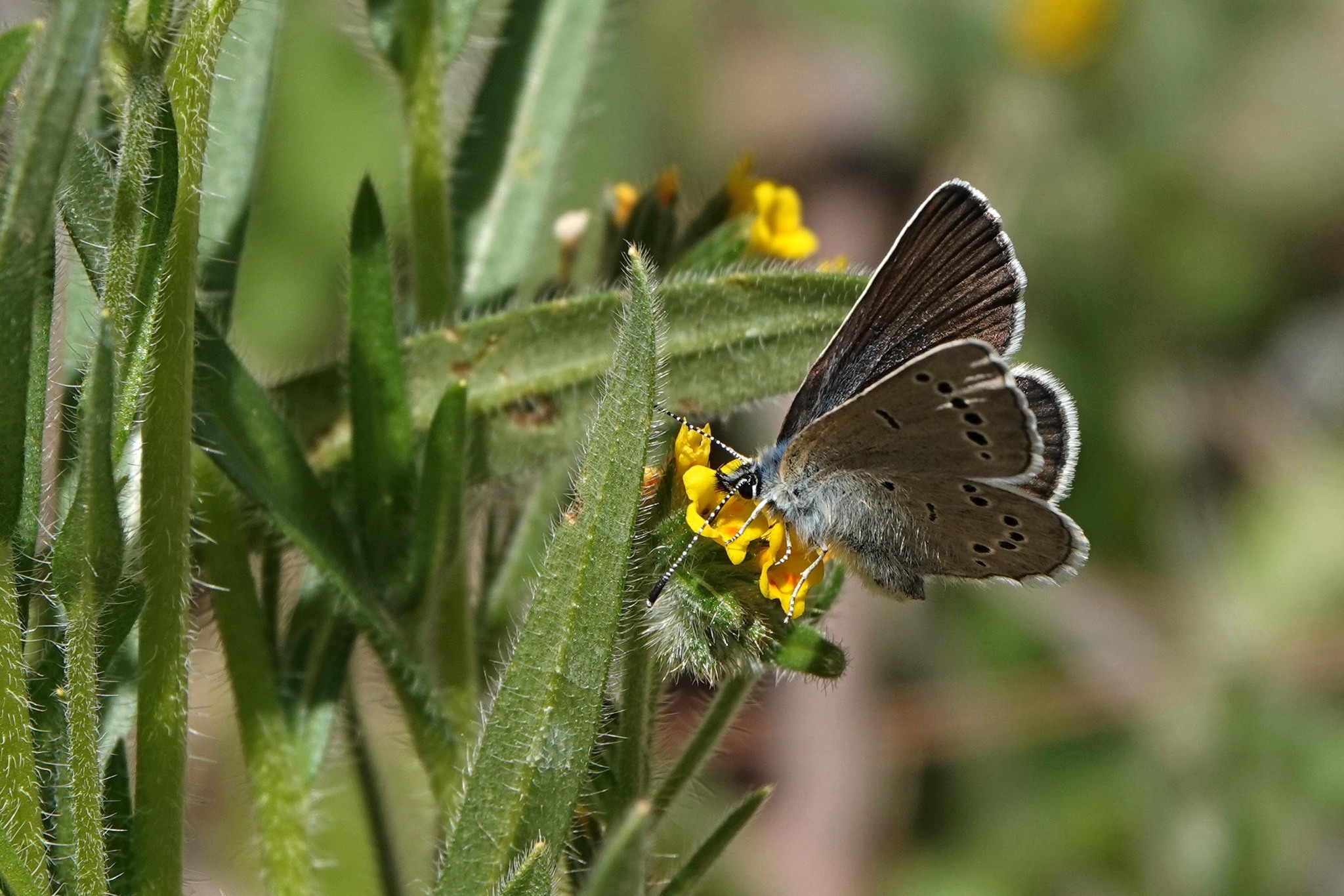 Glaucopsyche lygdamus | species | Amsinckia | genus | eats | Animalia | Arthropoda | Insecta | Lepidoptera | Lycaenidae | Glaucopsyche | Plantae | Tracheophyta | Magnoliopsida | Boraginales | Boraginaceae | Amsinckia | 37.150719 | -121.785315 | 2021 | 3 | 23 | http://creativecommons.org/licenses/by-nc/4.0/ | https://www.inaturalist.org/observations/71924970 | |