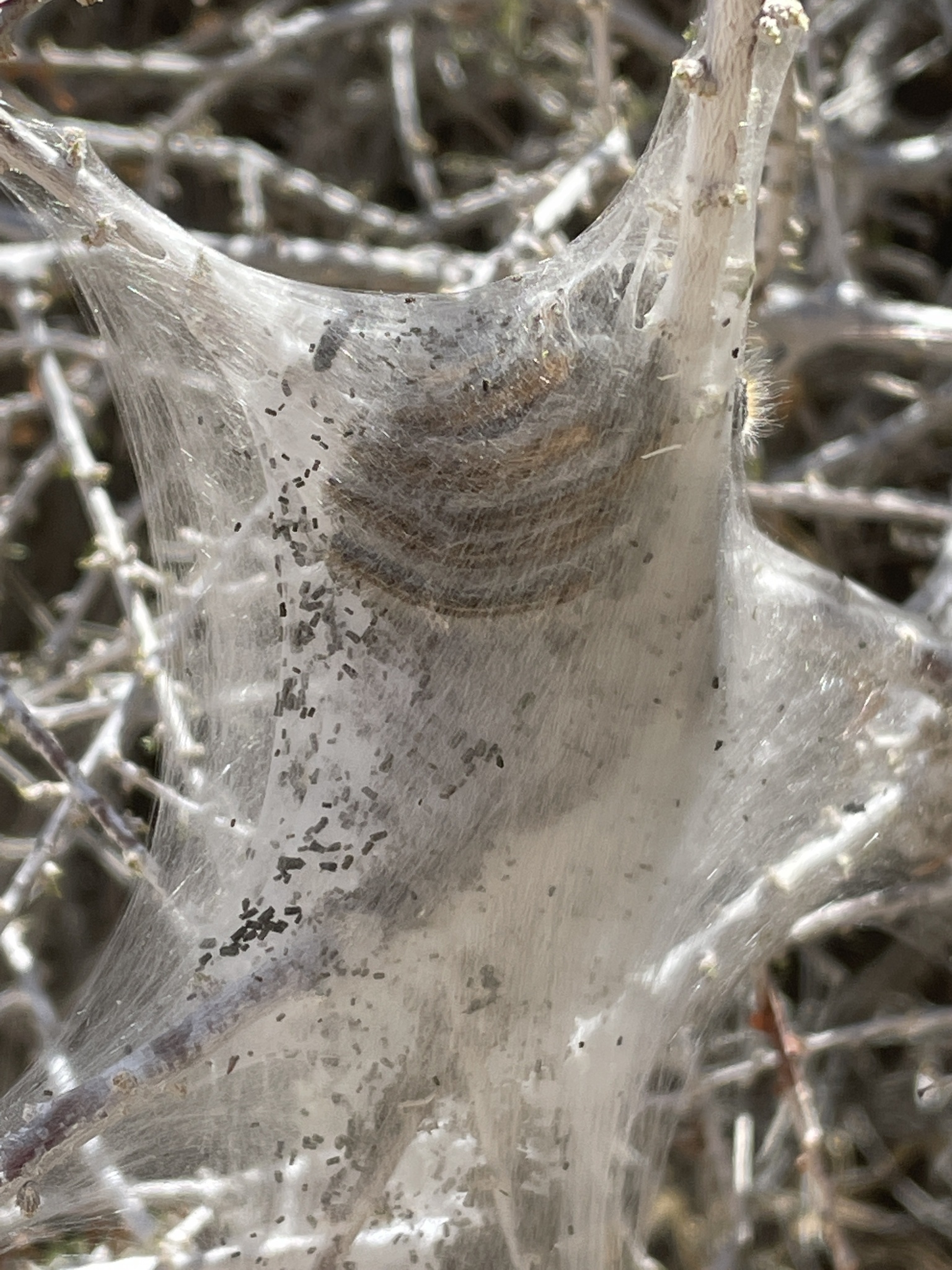 Malacosoma californica | species | Prunus fasciculata | species | hasHost | Animalia | Arthropoda | Insecta | Lepidoptera | Lasiocampidae | Malacosoma | Plantae | Tracheophyta | Magnoliopsida | Rosales | Rosaceae | Prunus | 34.101003 | -116.198837 | 2021 | 3 | 21 | http://creativecommons.org/publicdomain/zero/1.0/ | https://www.inaturalist.org/observations/71849245 | |