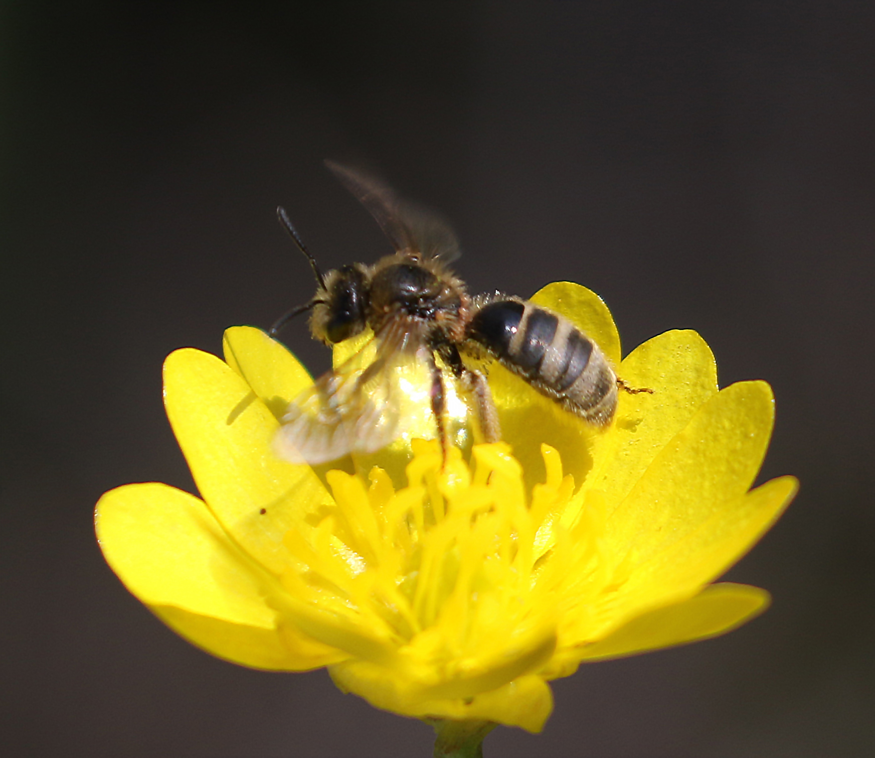 Andrena | genus | Ranunculus californicus | species | eats | Animalia | Arthropoda | Insecta | Hymenoptera | Andrenidae | Andrena | Plantae | Tracheophyta | Magnoliopsida | Ranunculales | Ranunculaceae | Ranunculus | 37.211328 | -121.79079 | 2021 | 3 | 22 | http://creativecommons.org/licenses/by-nc/4.0/ | https://www.inaturalist.org/observations/71855131 | |