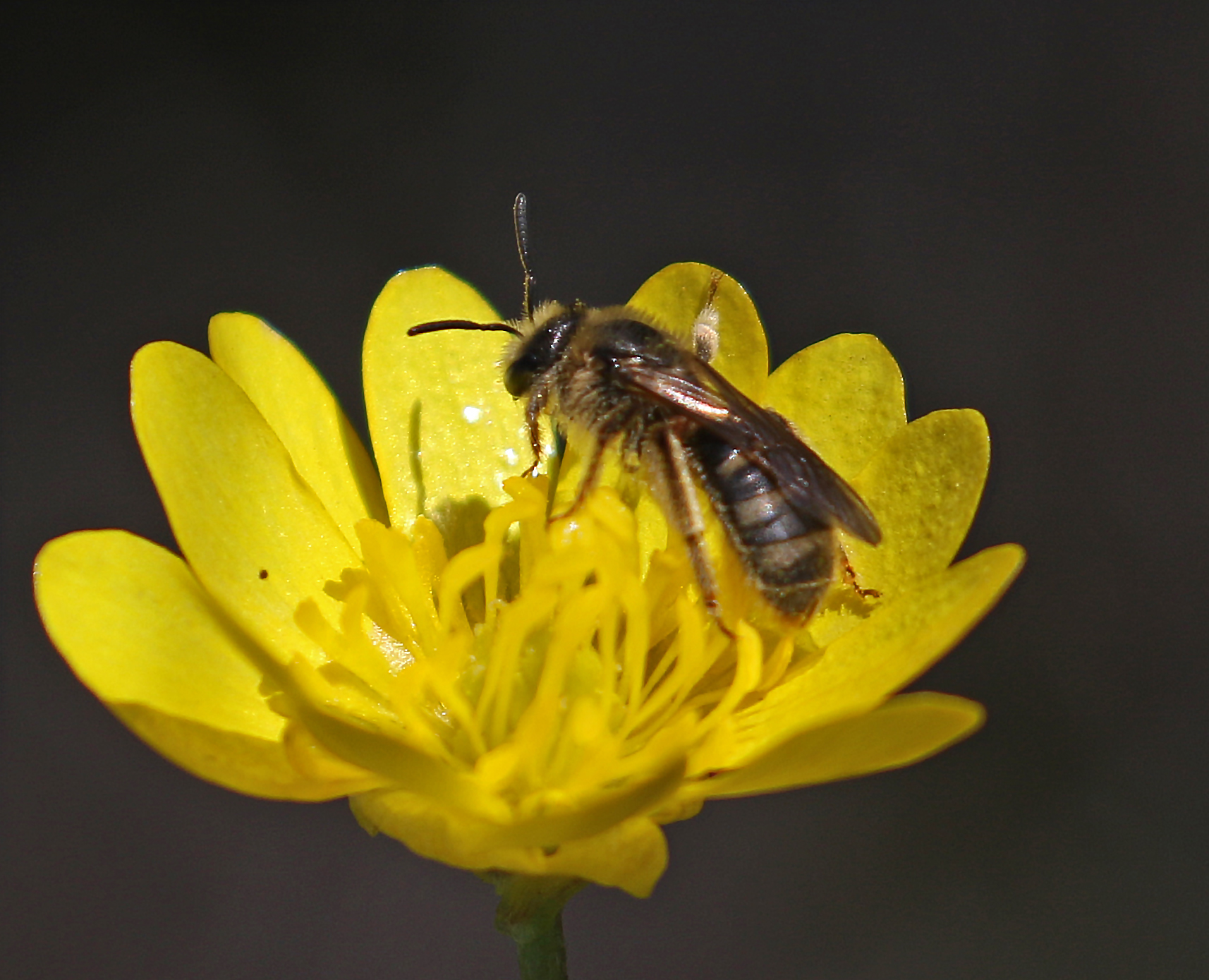 Andrena | genus | Ranunculus californicus | species | eats | Animalia | Arthropoda | Insecta | Hymenoptera | Andrenidae | Andrena | Plantae | Tracheophyta | Magnoliopsida | Ranunculales | Ranunculaceae | Ranunculus | 37.21132 | -121.790817 | 2021 | 3 | 22 | http://creativecommons.org/licenses/by-nc/4.0/ | https://www.inaturalist.org/observations/71855130 | |