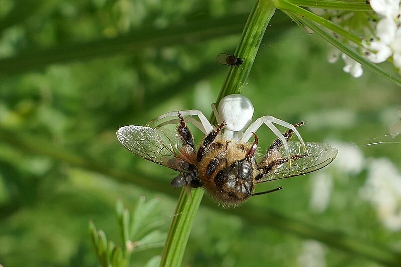Misumena vatia | species | Apis mellifera | species | eats | Animalia | Arthropoda | Arachnida | Araneae | Thomisidae | Misumena | Animalia | Arthropoda | Insecta | Hymenoptera | Apidae | Apis | 48.383387 | -1.960133 | 2023 | 5 | 27 | http://creativecommons.org/licenses/by-nc/4.0/ | https://www.inaturalist.org/observations/164010595 | |