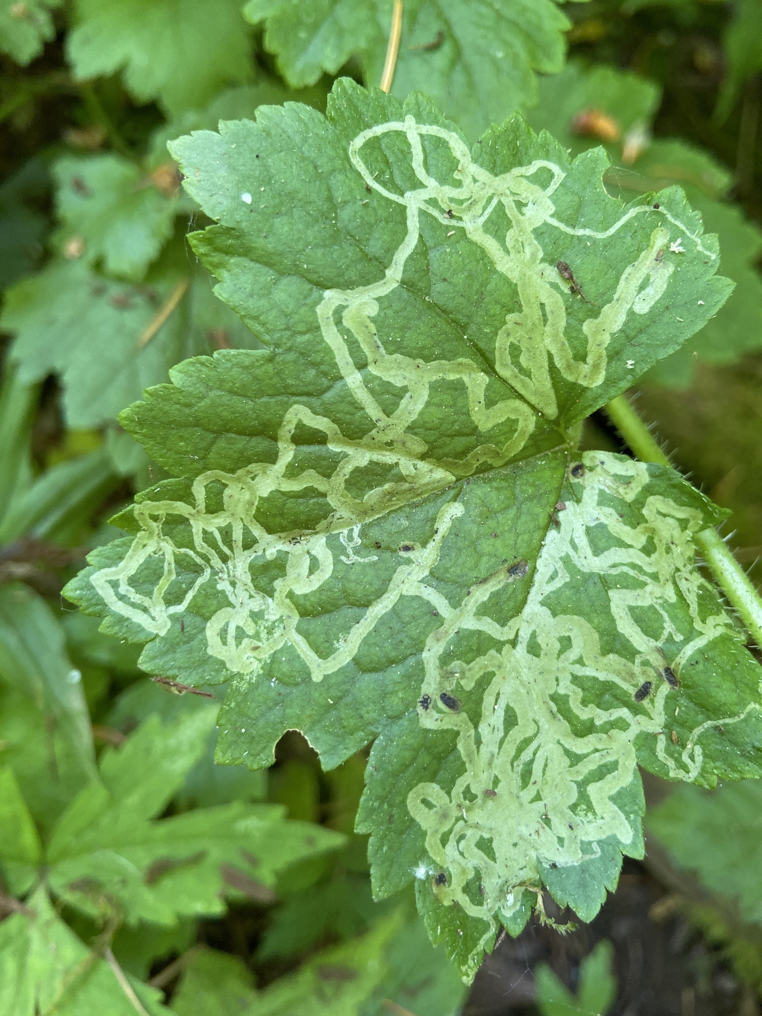 Phytomyza tiarellae | species | Tellima grandiflora | species | interactsWith | Animalia | Arthropoda | Insecta | Diptera | Agromyzidae | Phytomyza | Plantae | Tracheophyta | Magnoliopsida | Saxifragales | Saxifragaceae | Tellima | 44.035068 | -123.058481 | 2023 | 5 | 26 | http://creativecommons.org/licenses/by-nc/4.0/ | https://www.inaturalist.org/observations/163921281 | |