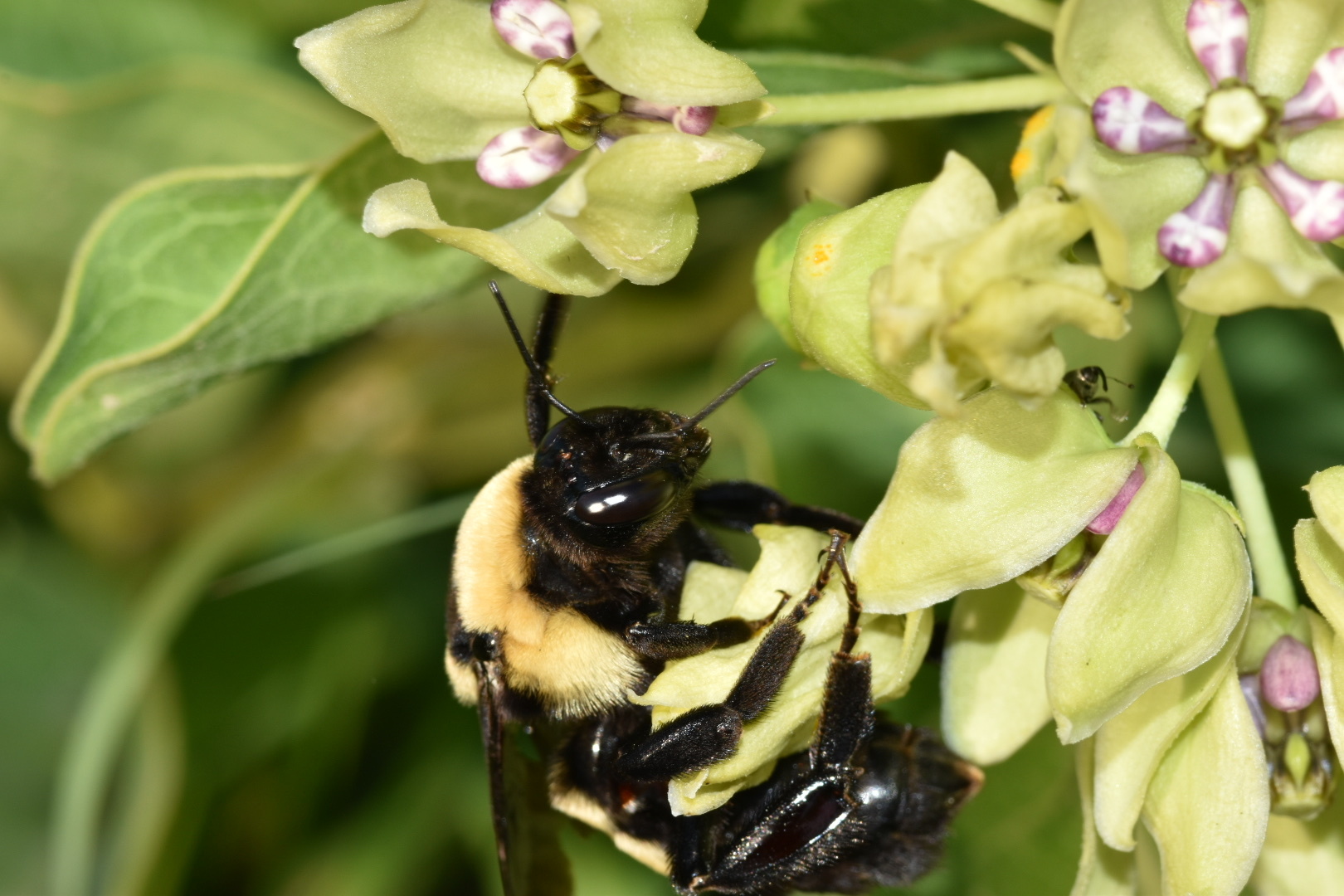 Bombus fraternus | species | Asclepias viridis | species | eats | Animalia | Arthropoda | Insecta | Hymenoptera | Apidae | Bombus | Plantae | Tracheophyta | Magnoliopsida | Gentianales | Apocynaceae | Asclepias | 39.106248 | -96.594777 | 2023 | 5 | 26 | http://creativecommons.org/licenses/by-nc/4.0/ | https://www.inaturalist.org/observations/163923334 | |