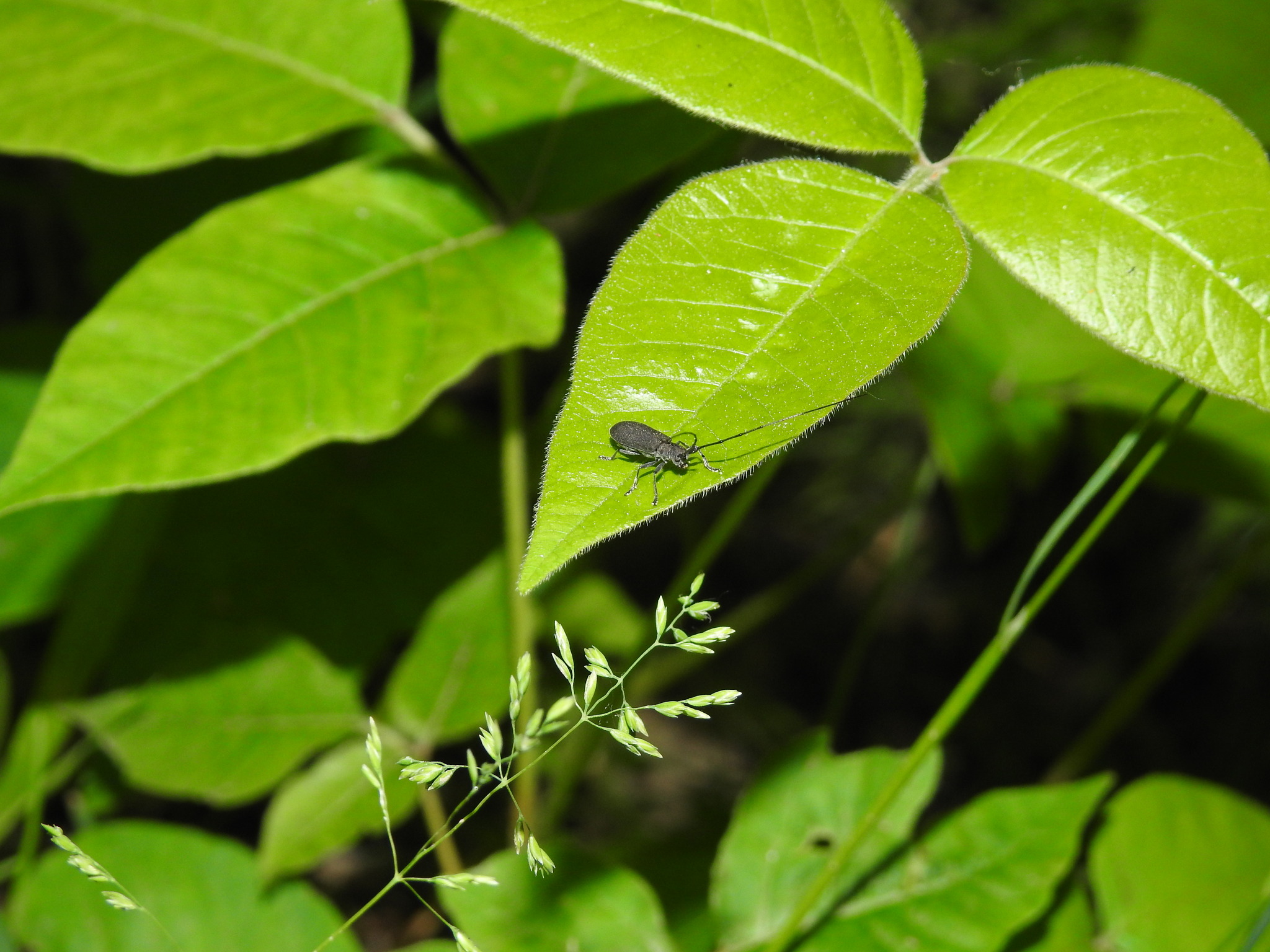 Dorcaschema nigrum | species | Toxicodendron radicans | species | visits | Animalia | Arthropoda | Insecta | Coleoptera | Cerambycidae | Dorcaschema | Plantae | Tracheophyta | Magnoliopsida | Sapindales | Anacardiaceae | Toxicodendron | 39.252716 | -84.752783 | 2023 | 5 | 26 | http://creativecommons.org/licenses/by-nc/4.0/ | https://www.inaturalist.org/observations/163935420 | |