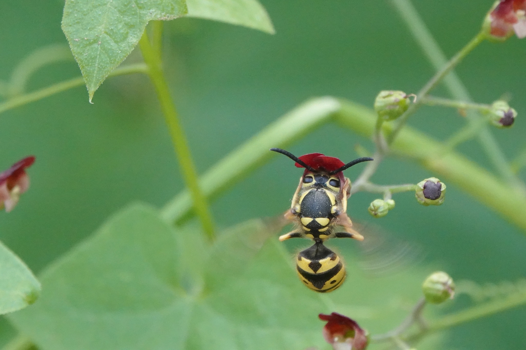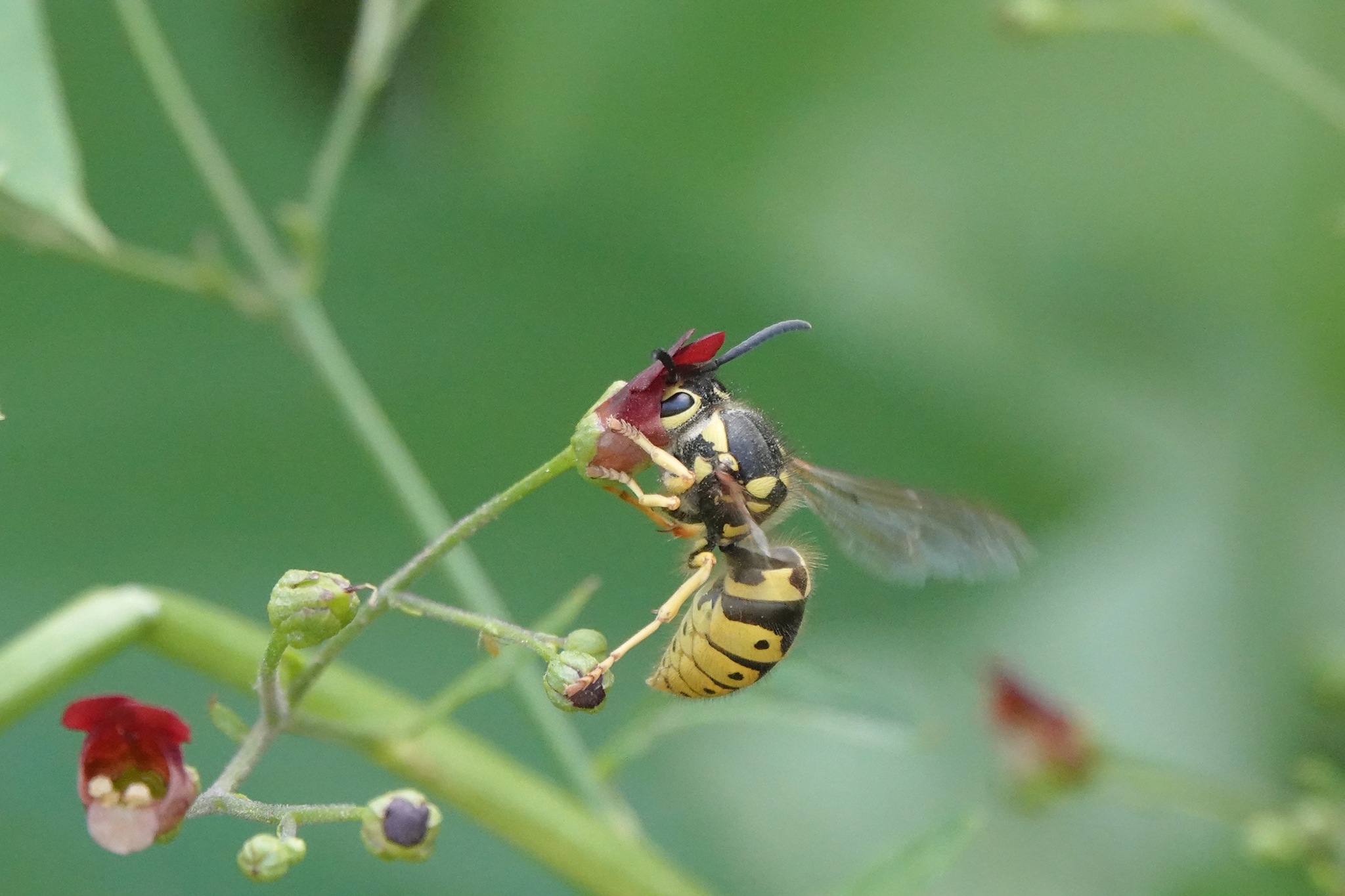 Vespula pensylvanica | species | Scrophularia californica | species | eats | Animalia | Arthropoda | Insecta | Hymenoptera | Vespidae | Vespula | Plantae | Tracheophyta | Magnoliopsida | Lamiales | Scrophulariaceae | Scrophularia | 37.070706 | -121.452847 | 2023 | 5 | 24 | http://creativecommons.org/licenses/by-nc/4.0/ | https://www.inaturalist.org/observations/163931976 | |