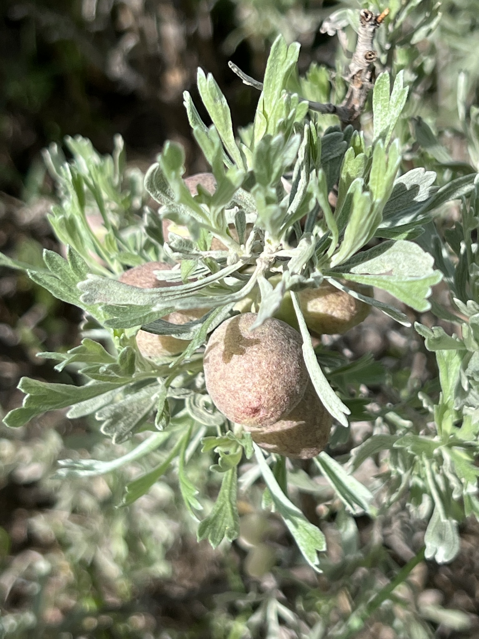 Rhopalomyia pomum | species | Artemisia tridentata | species | interactsWith | Animalia | Arthropoda | Insecta | Diptera | Cecidomyiidae | Rhopalomyia | Plantae | Tracheophyta | Magnoliopsida | Asterales | Asteraceae | Artemisia | 43.468742 | -110.777703 | 2023 | 5 | 26 | http://creativecommons.org/licenses/by/4.0/ | https://www.inaturalist.org/observations/163913520 | |