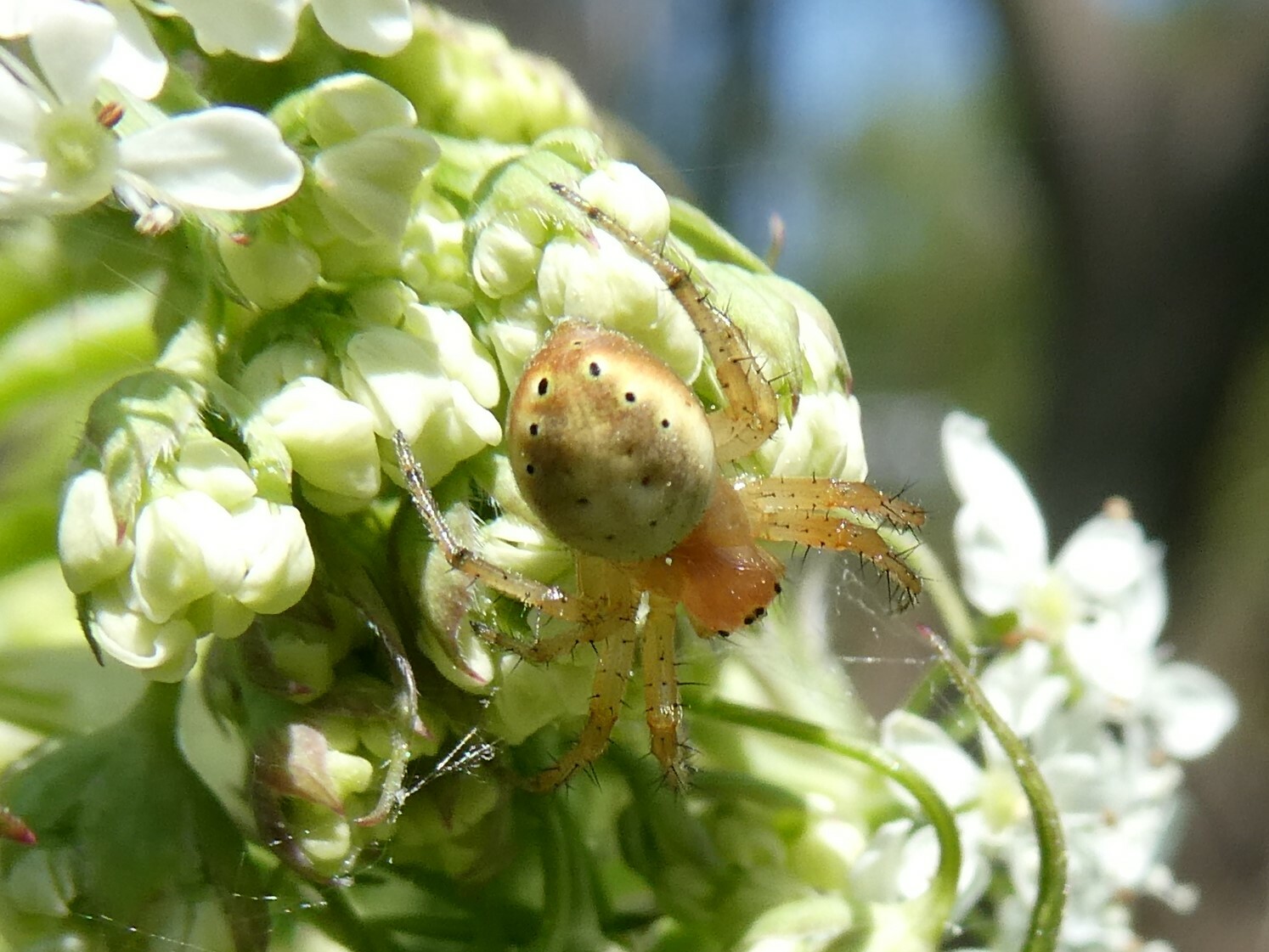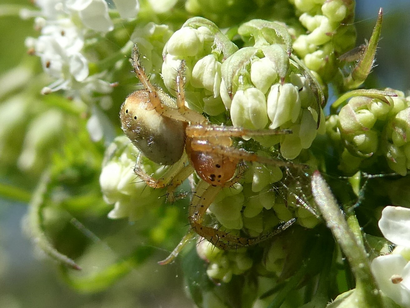 Araniella displicata | species | Anthriscus sylvestris | species | visitsFlowersOf | Animalia | Arthropoda | Arachnida | Araneae | Araneidae | Araniella | Plantae | Tracheophyta | Magnoliopsida | Apiales | Apiaceae | Anthriscus | 44.217712 | -72.788358 | 2023 | 5 | 26 | http://creativecommons.org/publicdomain/zero/1.0/ | https://www.inaturalist.org/observations/163904131 | |