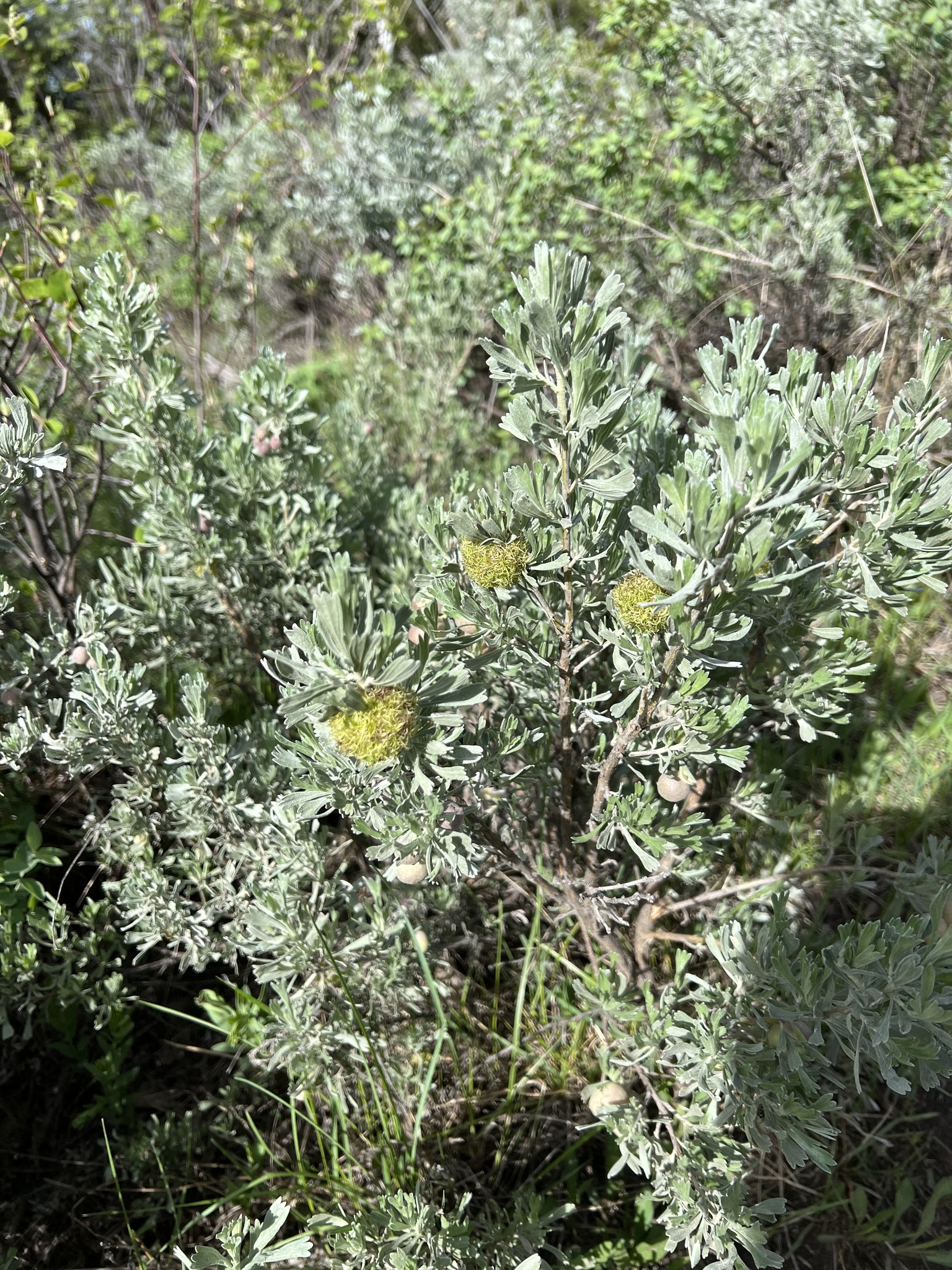 Rhopalomyia medusa | species | Artemisia tridentata | species | interactsWith | Animalia | Arthropoda | Insecta | Diptera | Cecidomyiidae | Rhopalomyia | Plantae | Tracheophyta | Magnoliopsida | Asterales | Asteraceae | Artemisia | 43.468747 | -110.777712 | 2023 | 5 | 26 | http://creativecommons.org/licenses/by/4.0/ | https://www.inaturalist.org/observations/163913486 | |