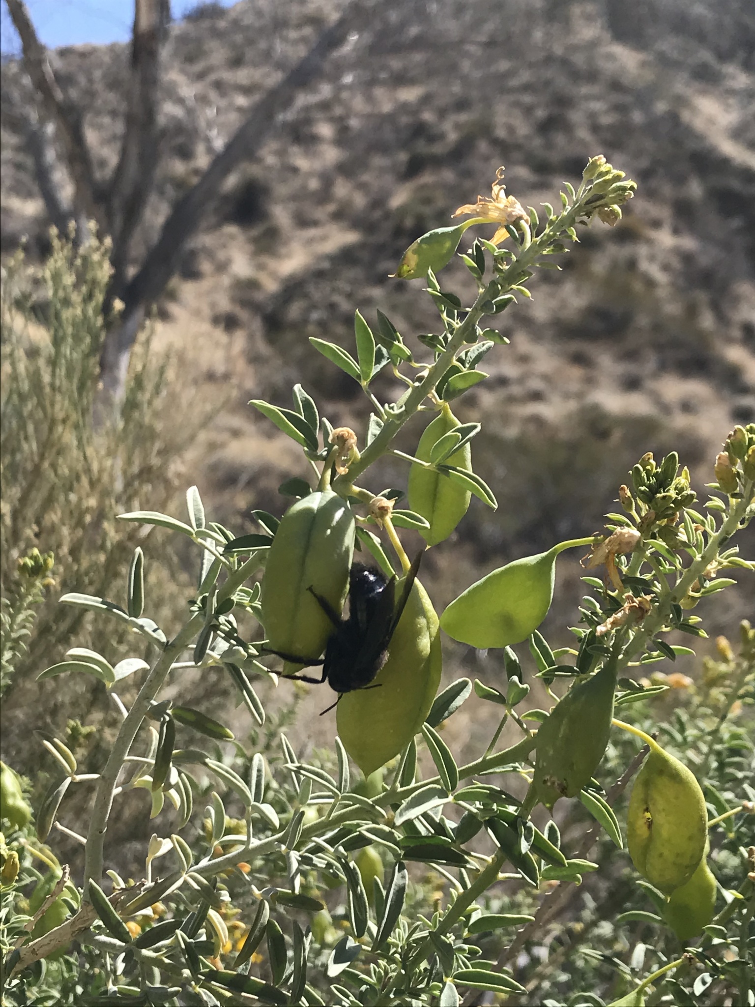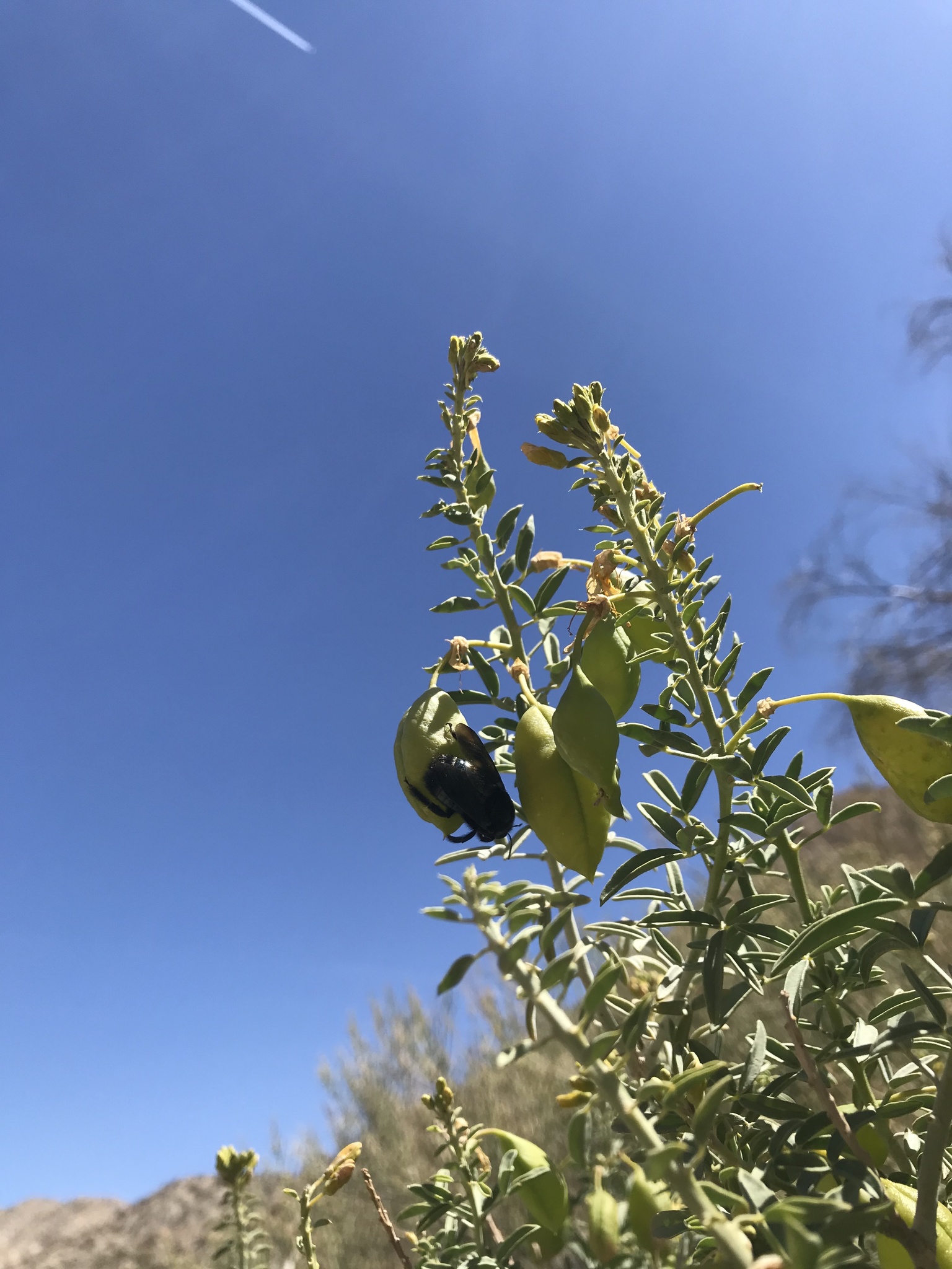 Xylocopa californica | species | Cleomella arborea | species | visitsFlowersOf | Animalia | Arthropoda | Insecta | Hymenoptera | Apidae | Xylocopa | Plantae | Tracheophyta | Magnoliopsida | Brassicales | Cleomaceae | Cleomella | 34.03 | -116.555855 | 2021 | 3 | 19 | http://creativecommons.org/licenses/by-nc/4.0/ | https://www.inaturalist.org/observations/71775851 | |