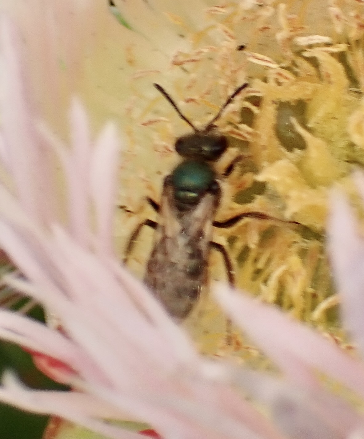 Lasioglossum pavonotum | species | Carpobrotus | genus | eats | Animalia | Arthropoda | Insecta | Hymenoptera | Halictidae | Lasioglossum | Plantae | Tracheophyta | Magnoliopsida | Caryophyllales | Aizoaceae | Carpobrotus | 37.701934 | -122.497677 | 2023 | 5 | 26 | http://creativecommons.org/licenses/by/4.0/ | https://www.inaturalist.org/observations/163891525 | |