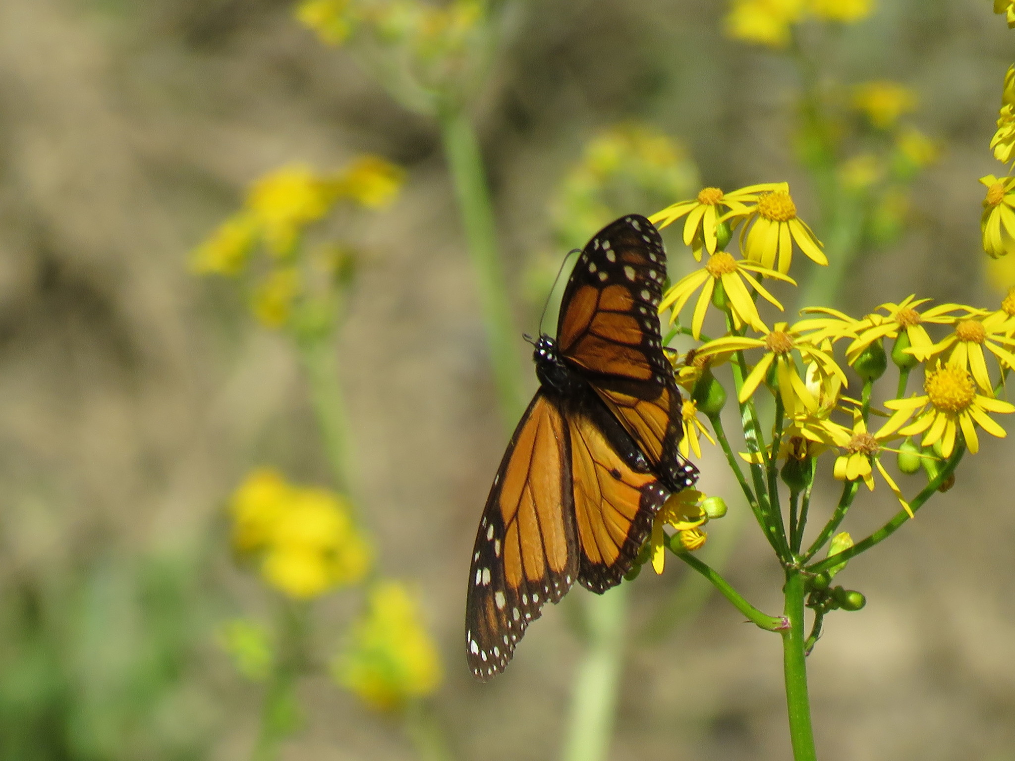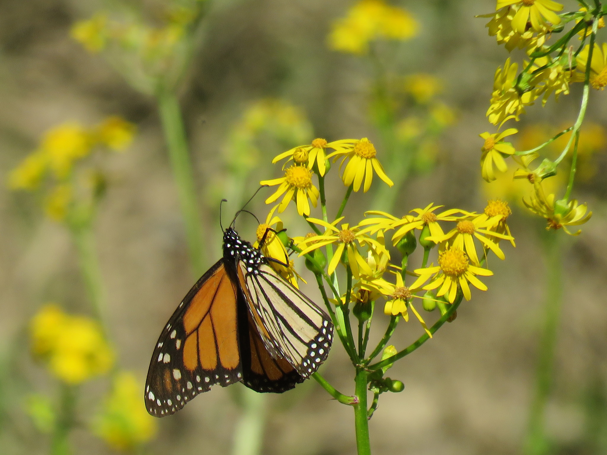 Danaus plexippus | species | Packera glabella | species | interactsWith | Animalia | Arthropoda | Insecta | Lepidoptera | Nymphalidae | Danaus | Plantae | Tracheophyta | Magnoliopsida | Asterales | Asteraceae | Packera | 30.566961 | -88.627205 | 2021 | 3 | 21 | http://creativecommons.org/licenses/by-nc/4.0/ | https://www.inaturalist.org/observations/71765014 | |