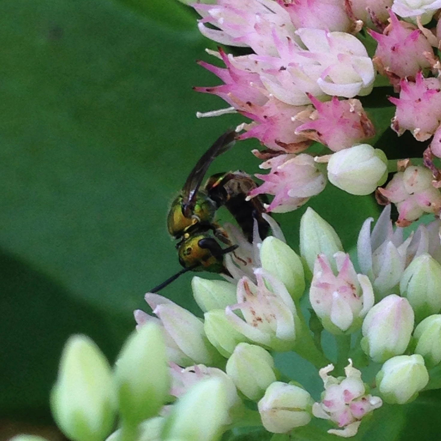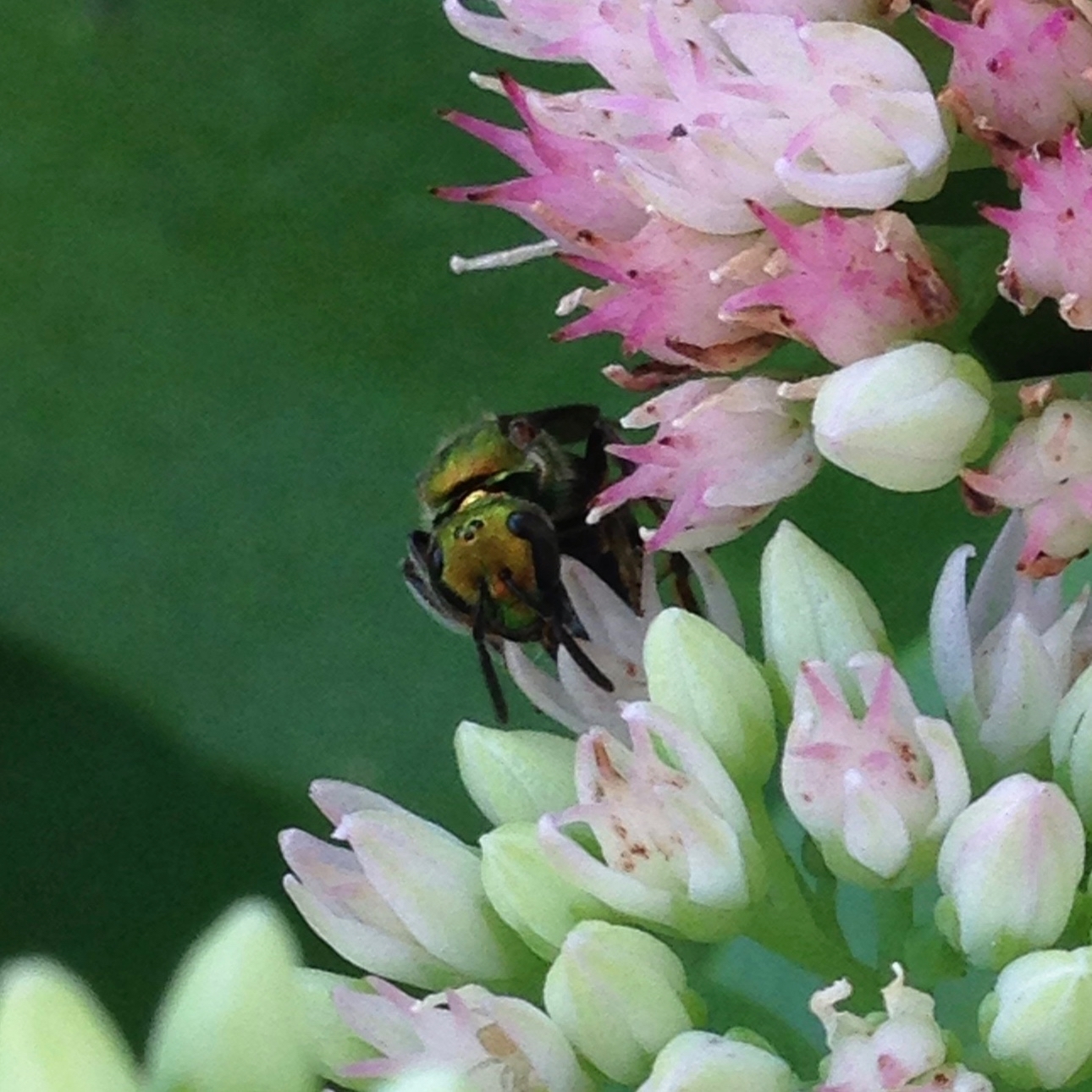 Augochlora pura | species | Sedum | genus | visitsFlowersOf | Animalia | Arthropoda | Insecta | Hymenoptera | Halictidae | Augochlora | Plantae | Tracheophyta | Magnoliopsida | Saxifragales | Crassulaceae | Sedum | 39.505837 | -77.566663 | 2019 | 8 | 1 | http://creativecommons.org/licenses/by-nc/4.0/ | https://www.inaturalist.org/observations/71770062 | |