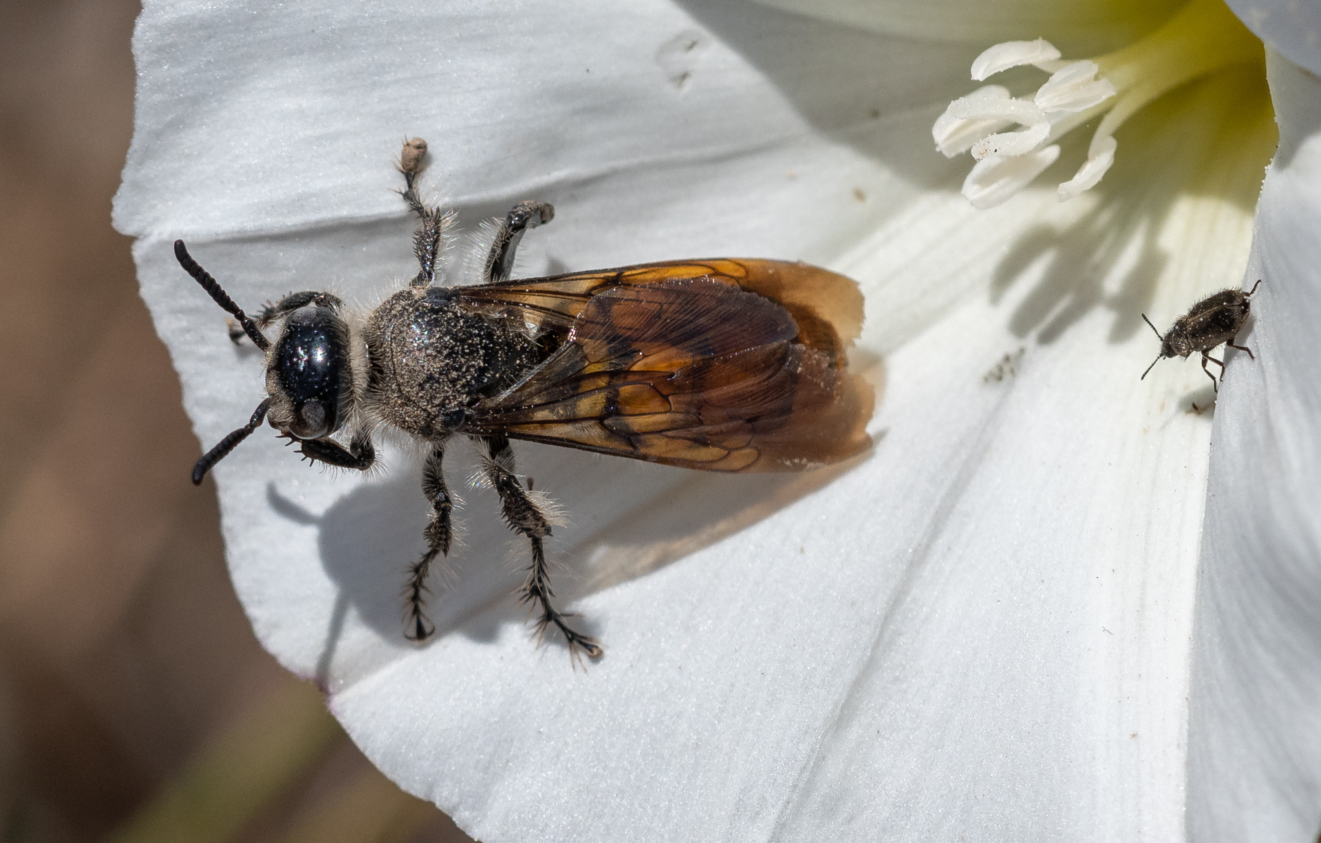 Dielis tolteca | species | Calystegia macrostegia | species | visitsFlowersOf | Animalia | Arthropoda | Insecta | Hymenoptera | Scoliidae | Dielis | Plantae | Tracheophyta | Magnoliopsida | Solanales | Convolvulaceae | Calystegia | 32.916476 | -117.257729 | 2023 | 5 | 26 | http://creativecommons.org/licenses/by-nc/4.0/ | https://www.inaturalist.org/observations/163879711 |