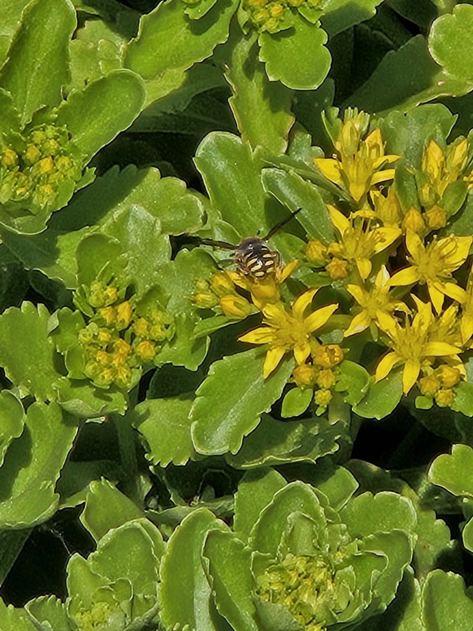 Anthidium oblongatum | species | Phedimus ellacombeanus | species | visitsFlowersOf | Animalia | Arthropoda | Insecta | Hymenoptera | Megachilidae | Anthidium | Plantae | Tracheophyta | Magnoliopsida | Saxifragales | Crassulaceae | Phedimus | 39.933361 | -86.272623 | 2023 | 5 | 26 | http://creativecommons.org/licenses/by-nc/4.0/ | https://www.inaturalist.org/observations/163881448 | |