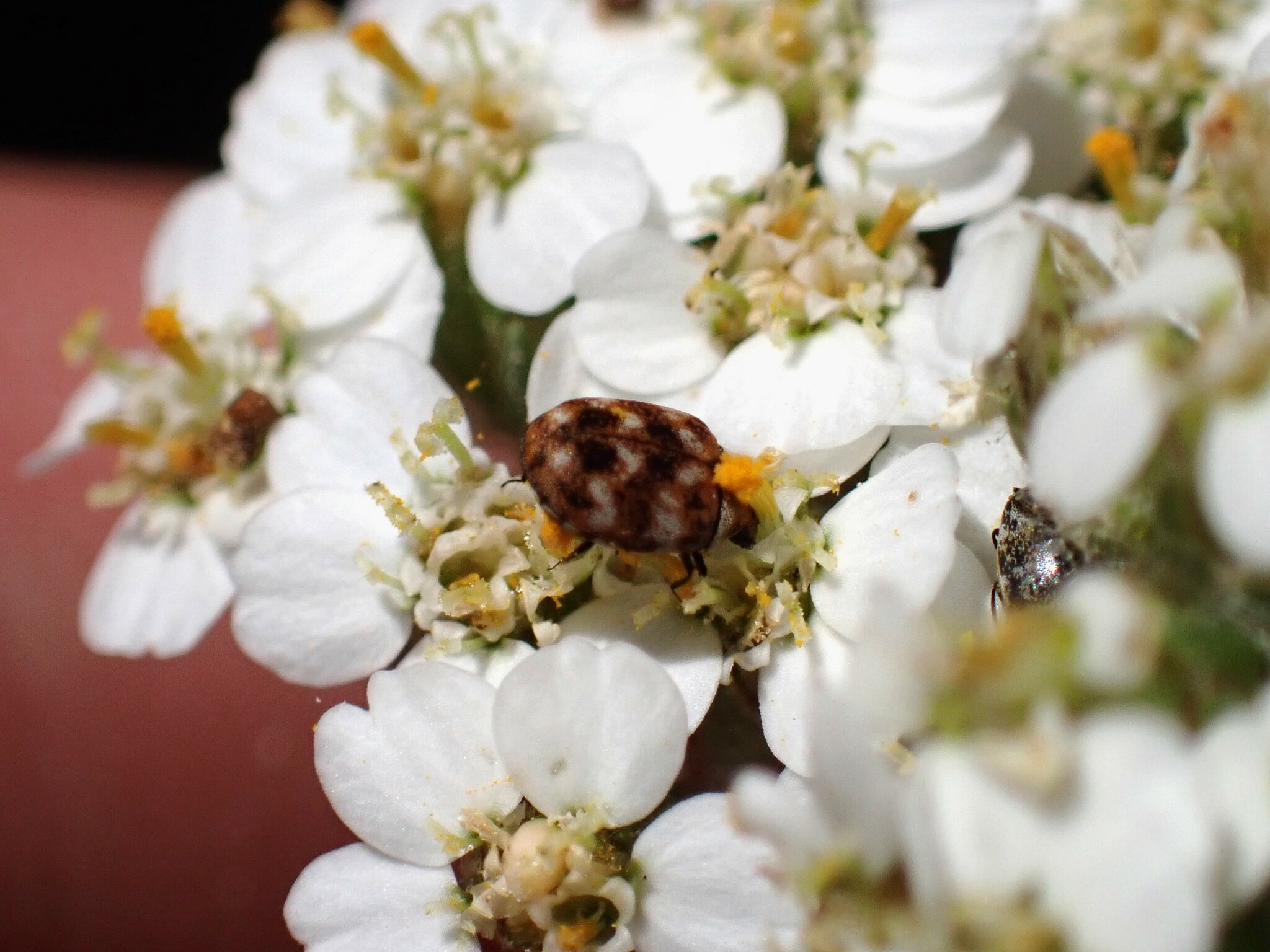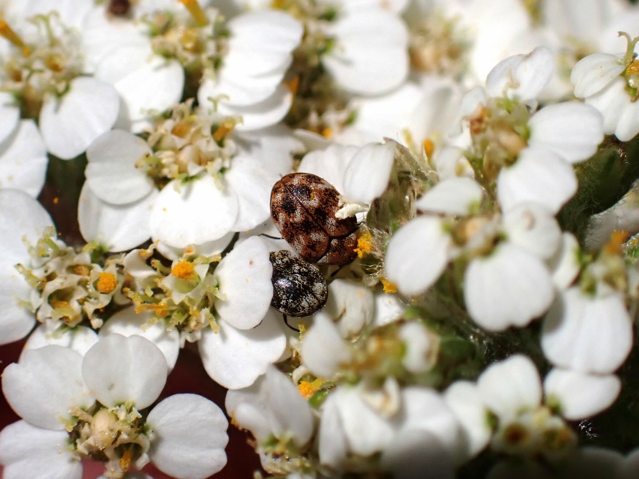Anthrenus verbasci | species | Achillea millefolium | species | eats | Animalia | Arthropoda | Insecta | Coleoptera | Dermestidae | Anthrenus | Plantae | Tracheophyta | Magnoliopsida | Asterales | Asteraceae | Achillea | 37.368004 | -121.85458 | 2023 | 5 | 26 | http://creativecommons.org/licenses/by-nc/4.0/ | https://www.inaturalist.org/observations/163888801 | |