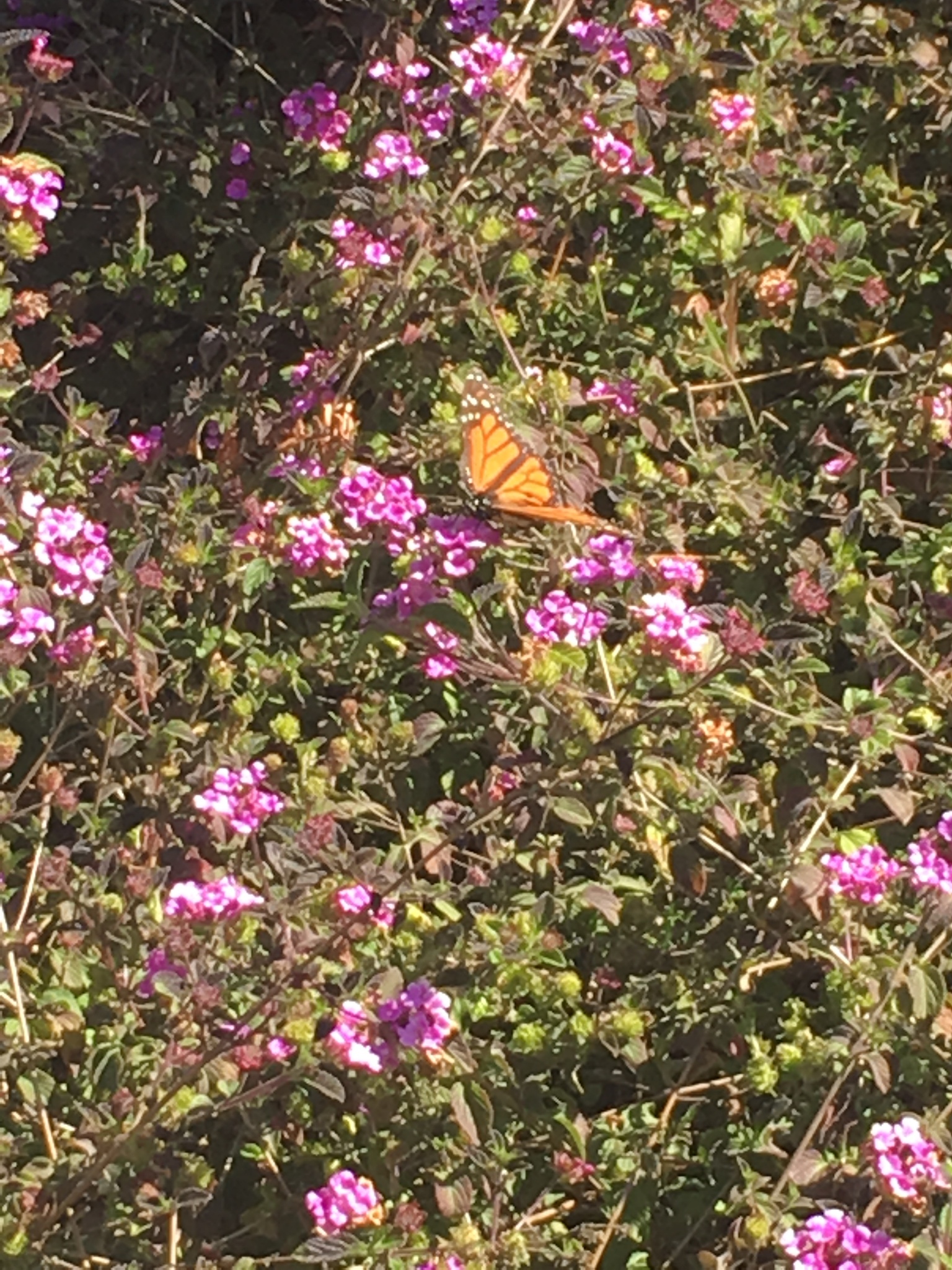 Danaus plexippus | species | Lantana | genus | eats | Animalia | Arthropoda | Insecta | Lepidoptera | Nymphalidae | Danaus | Plantae | Tracheophyta | Magnoliopsida | Lamiales | Verbenaceae | Lantana | 37.522742 | -122.08255 | 2021 | 3 | 21 | http://creativecommons.org/licenses/by-nc/4.0/ | https://www.inaturalist.org/observations/71727835 | |