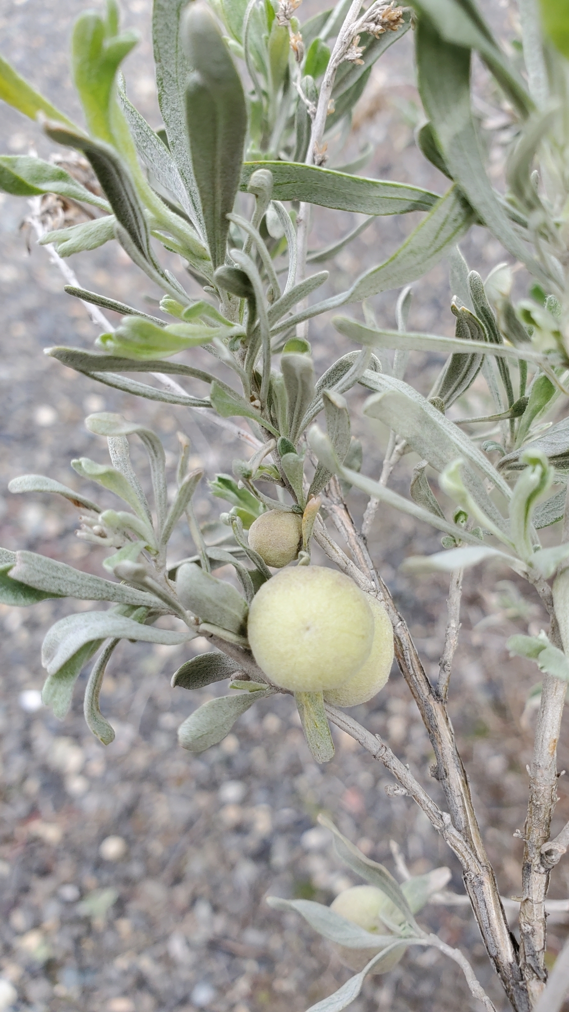 Rhopalomyia pomum | species | Artemisia tridentata | species | interactsWith | Animalia | Arthropoda | Insecta | Diptera | Cecidomyiidae | Rhopalomyia | Plantae | Tracheophyta | Magnoliopsida | Asterales | Asteraceae | Artemisia | 45.631949 | -120.91474 | 2021 | 3 | 21 | http://creativecommons.org/licenses/by-nc/4.0/ | https://www.inaturalist.org/observations/71734958 | |