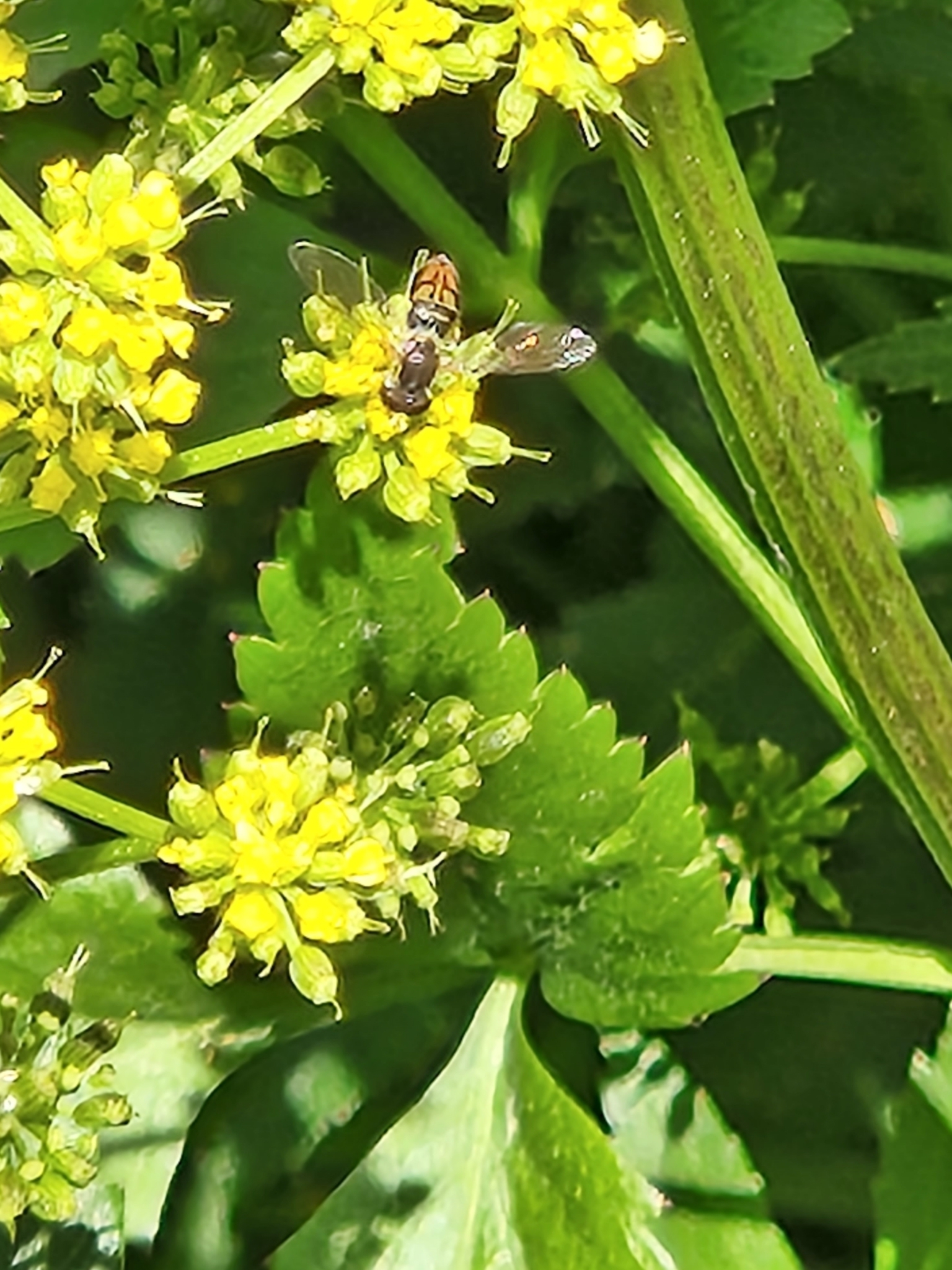 Toxomerus marginatus | species | Zizia aurea | species | visitsFlowersOf | Animalia | Arthropoda | Insecta | Diptera | Syrphidae | Toxomerus | Plantae | Tracheophyta | Magnoliopsida | Apiales | Apiaceae | Zizia | 40.578378 | -74.720776 | 2023 | 5 | 26 | http://creativecommons.org/licenses/by-nc/4.0/ | https://www.inaturalist.org/observations/163840232 | |