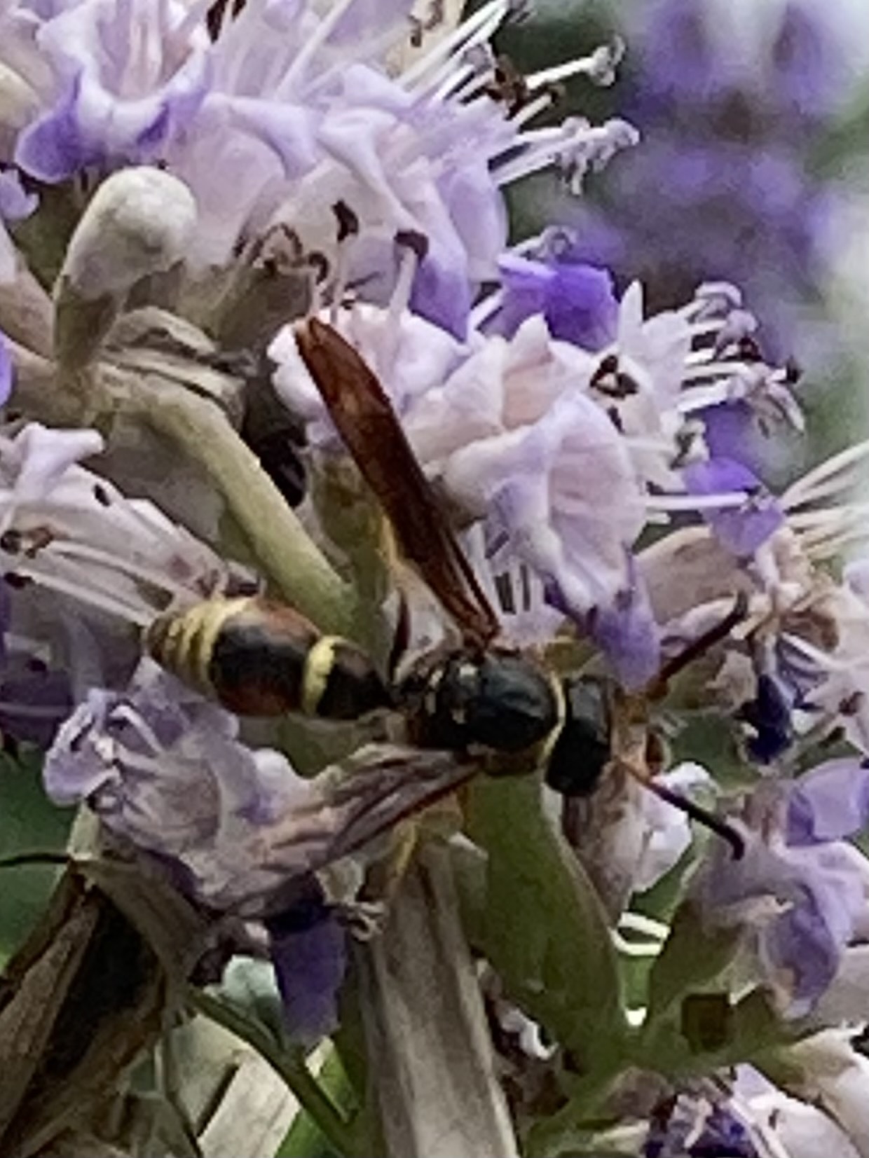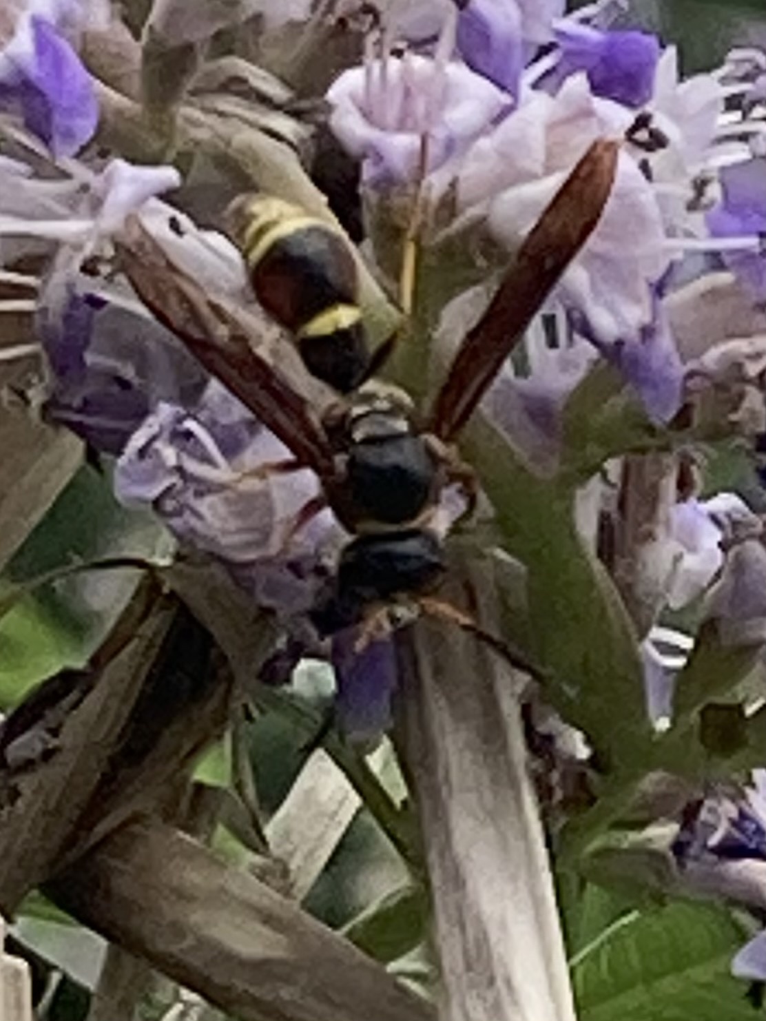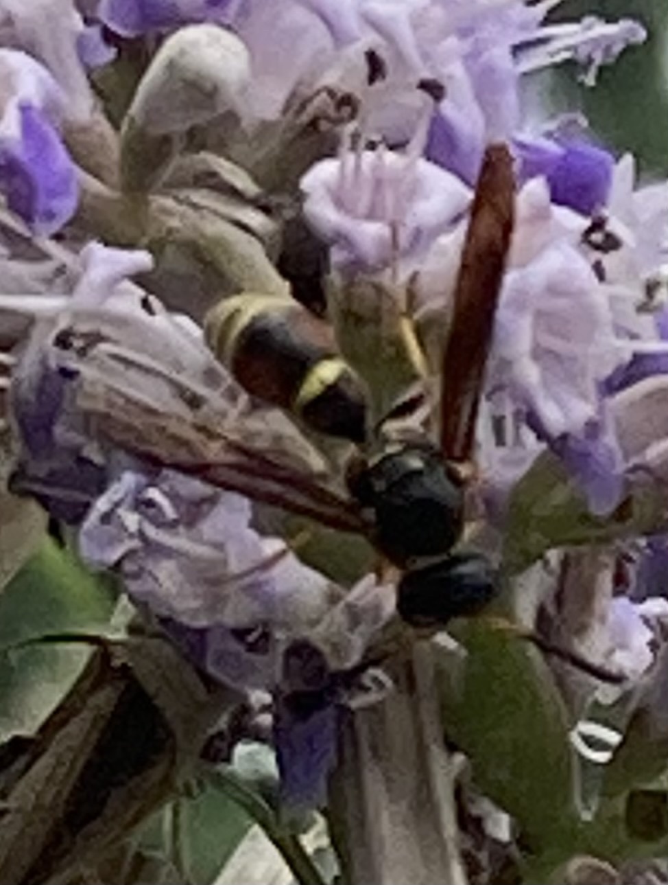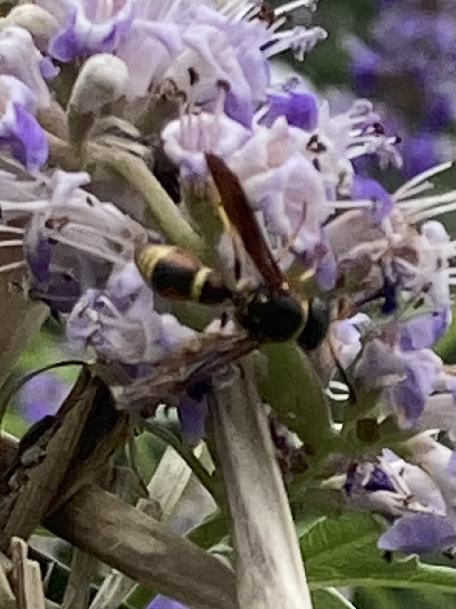 Parazumia tolteca | species | Vitex agnus-castus | species | visits | Animalia | Arthropoda | Insecta | Hymenoptera | Eumenidae | Parazumia | Plantae | Tracheophyta | Magnoliopsida | Lamiales | Lamiaceae | Vitex | 30.366303 | -97.785347 | 2023 | 5 | 25 | http://creativecommons.org/licenses/by/4.0/ | https://www.inaturalist.org/observations/163848386 | |