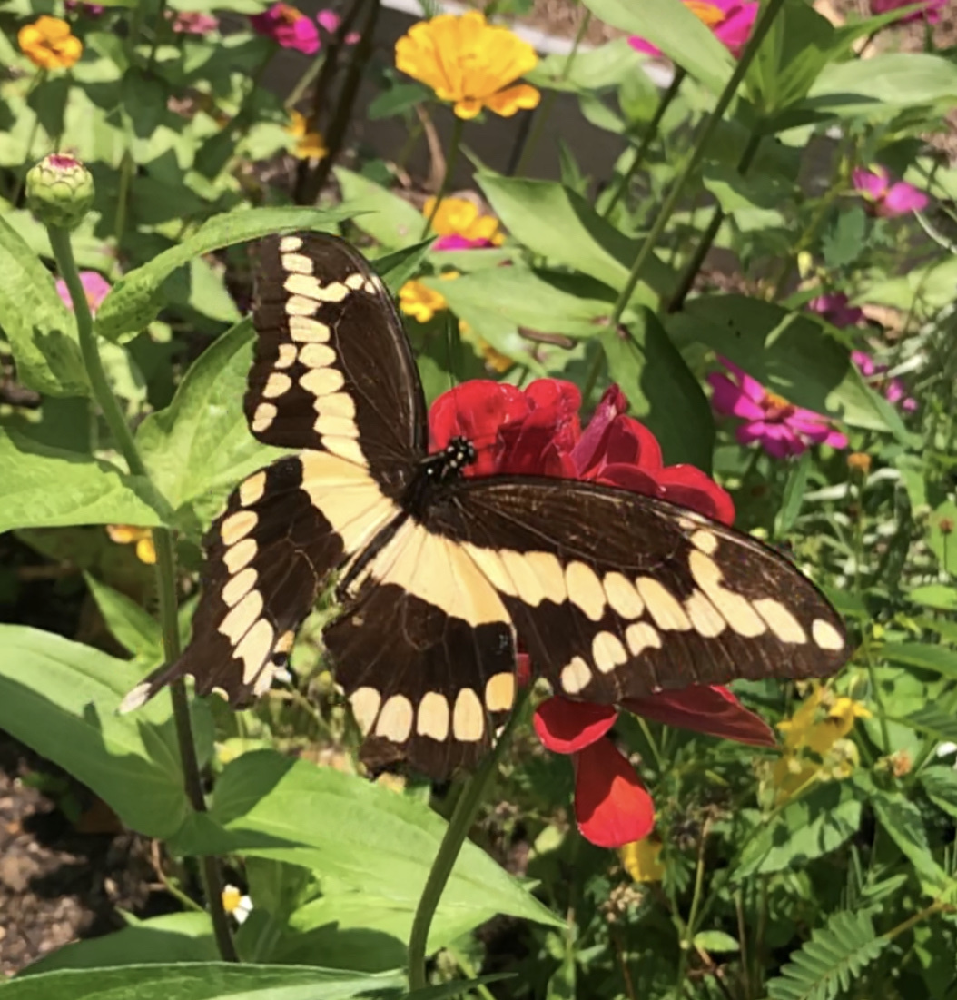 Papilio cresphontes | species | Zinnia elegans | species | interactsWith | Animalia | Arthropoda | Insecta | Lepidoptera | Papilionidae | Papilio | Plantae | Tracheophyta | Magnoliopsida | Asterales | Asteraceae | Zinnia | 30.296715 | -89.346783 | 2023 | 5 | 26 | http://creativecommons.org/licenses/by-nc/4.0/ | https://www.inaturalist.org/observations/163850059 | |