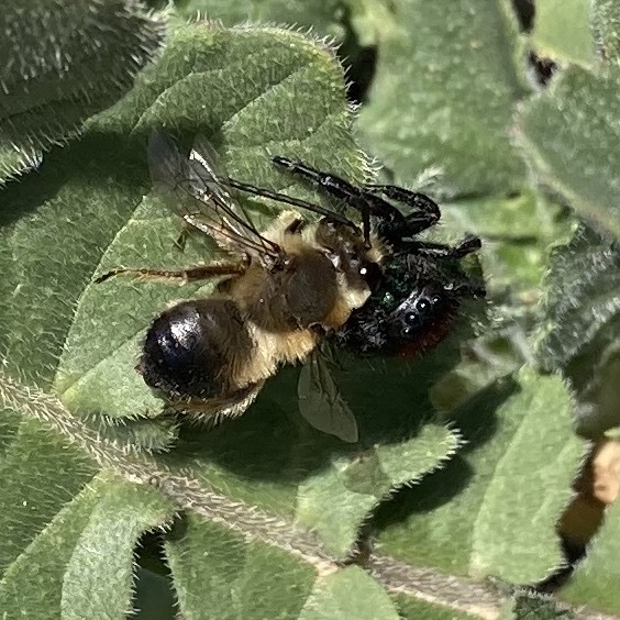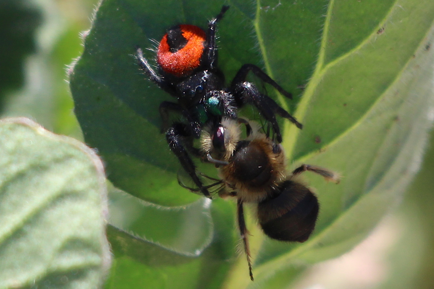 Phidippus johnsoni | species | Eucera | genus | preysOn | Animalia | Arthropoda | Arachnida | Araneae | Salticidae | Phidippus | Animalia | Arthropoda | Insecta | Hymenoptera | Apidae | Eucera | 34.107085 | -118.73575 | 2021 | 3 | 19 | http://creativecommons.org/licenses/by-nc/4.0/ | https://www.inaturalist.org/observations/71718582 |