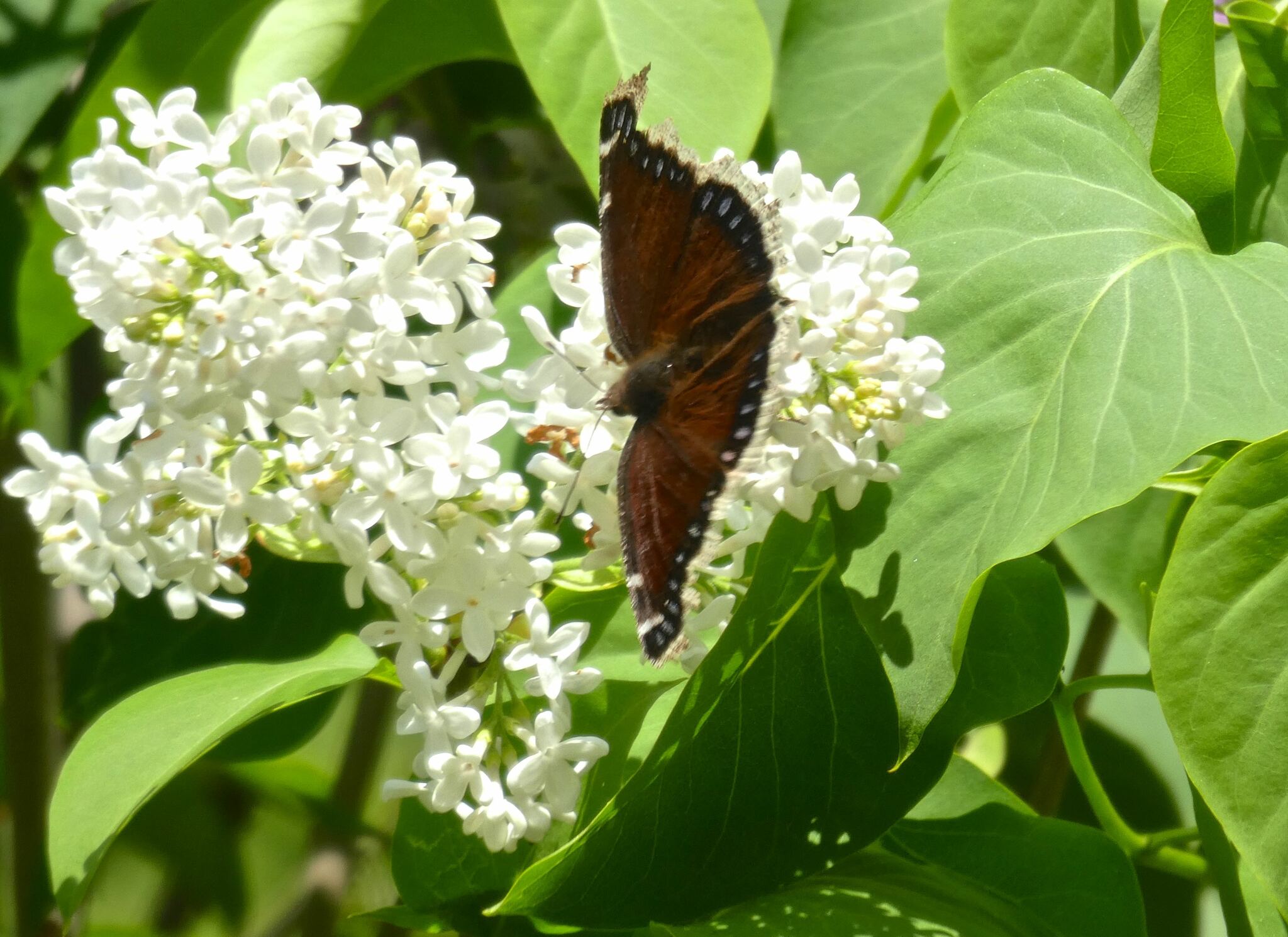 Nymphalis antiopa | species | Syringa | genus | visitsFlowersOf | Animalia | Arthropoda | Insecta | Lepidoptera | Nymphalidae | Nymphalis | Plantae | Tracheophyta | Magnoliopsida | Lamiales | Oleaceae | Syringa | 44.390012 | -72.767014 | 2023 | 5 | 22 | http://creativecommons.org/licenses/by-nc/4.0/ | https://www.inaturalist.org/observations/163821238 | |