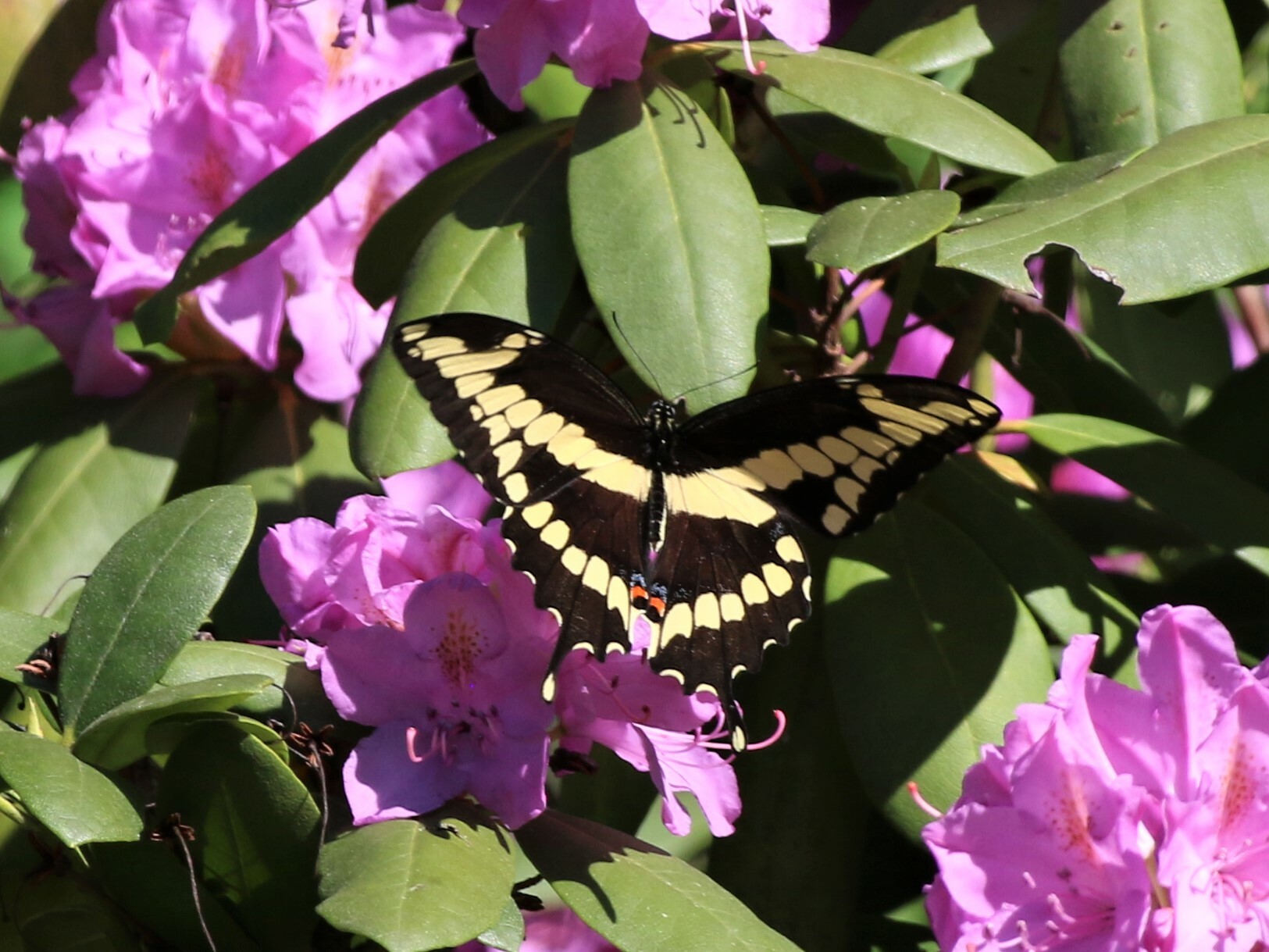 Papilio cresphontes | species | Rhododendron | genus | visitsFlowersOf | Animalia | Arthropoda | Insecta | Lepidoptera | Papilionidae | Papilio | Plantae | Tracheophyta | Magnoliopsida | Ericales | Ericaceae | Rhododendron | 40.937655 | -74.870623 | 2023 | 5 | 25 | http://creativecommons.org/licenses/by-nc/4.0/ | https://www.inaturalist.org/observations/163848882 | |