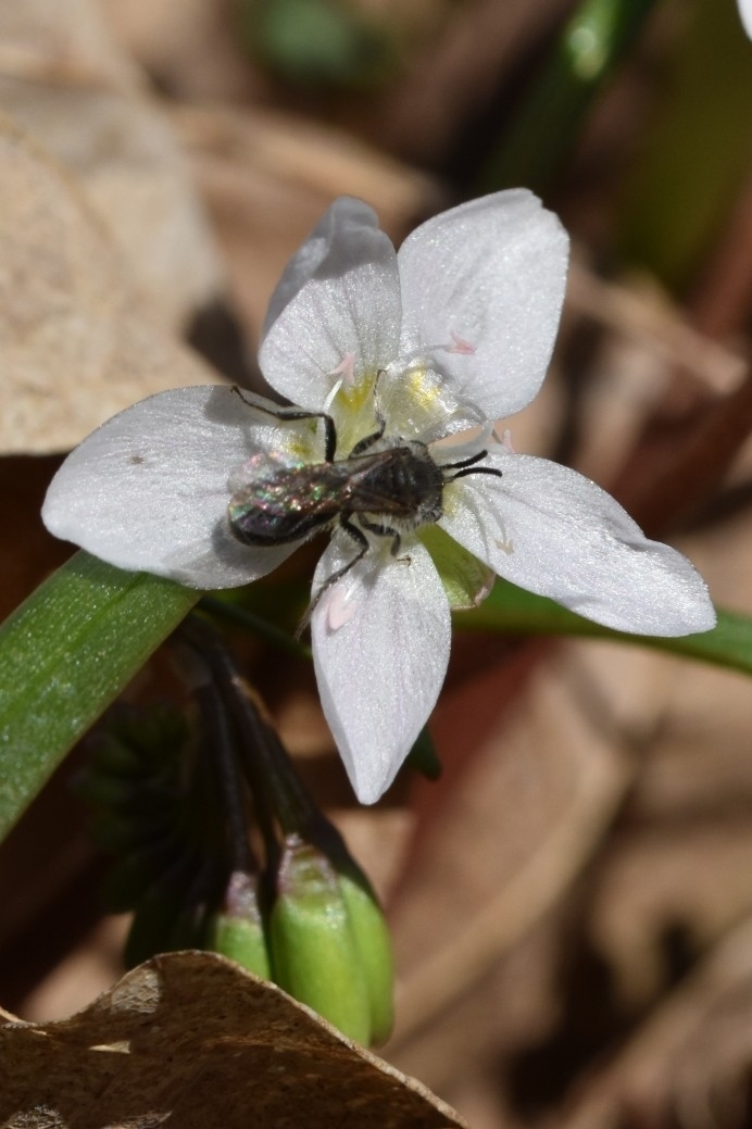 Andrena erigeniae | species | Claytonia virginica | species | visitsFlowersOf | Animalia | Arthropoda | Insecta | Hymenoptera | Andrenidae | Andrena | Plantae | Tracheophyta | Magnoliopsida | Caryophyllales | Montiaceae | Claytonia | 39.503488 | -85.667981 | 2021 | 3 | 20 | http://creativecommons.org/licenses/by-nc/4.0/ | https://www.inaturalist.org/observations/71662951 | |
