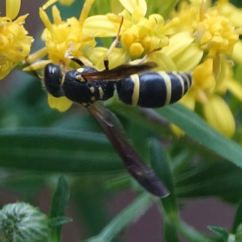 Ancistrocerus adiabatus | species | Solidago | genus | visitsFlowersOf | Animalia | Arthropoda | Insecta | Hymenoptera | Vespidae | Ancistrocerus | Plantae | Tracheophyta | Magnoliopsida | Asterales | Asteraceae | Solidago | 41.04166 | -73.846406 | 2020 | 9 | 25 | http://creativecommons.org/licenses/by-nc/4.0/ | https://www.inaturalist.org/observations/71665147 | |