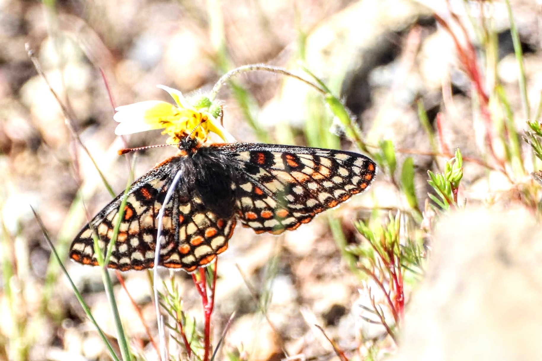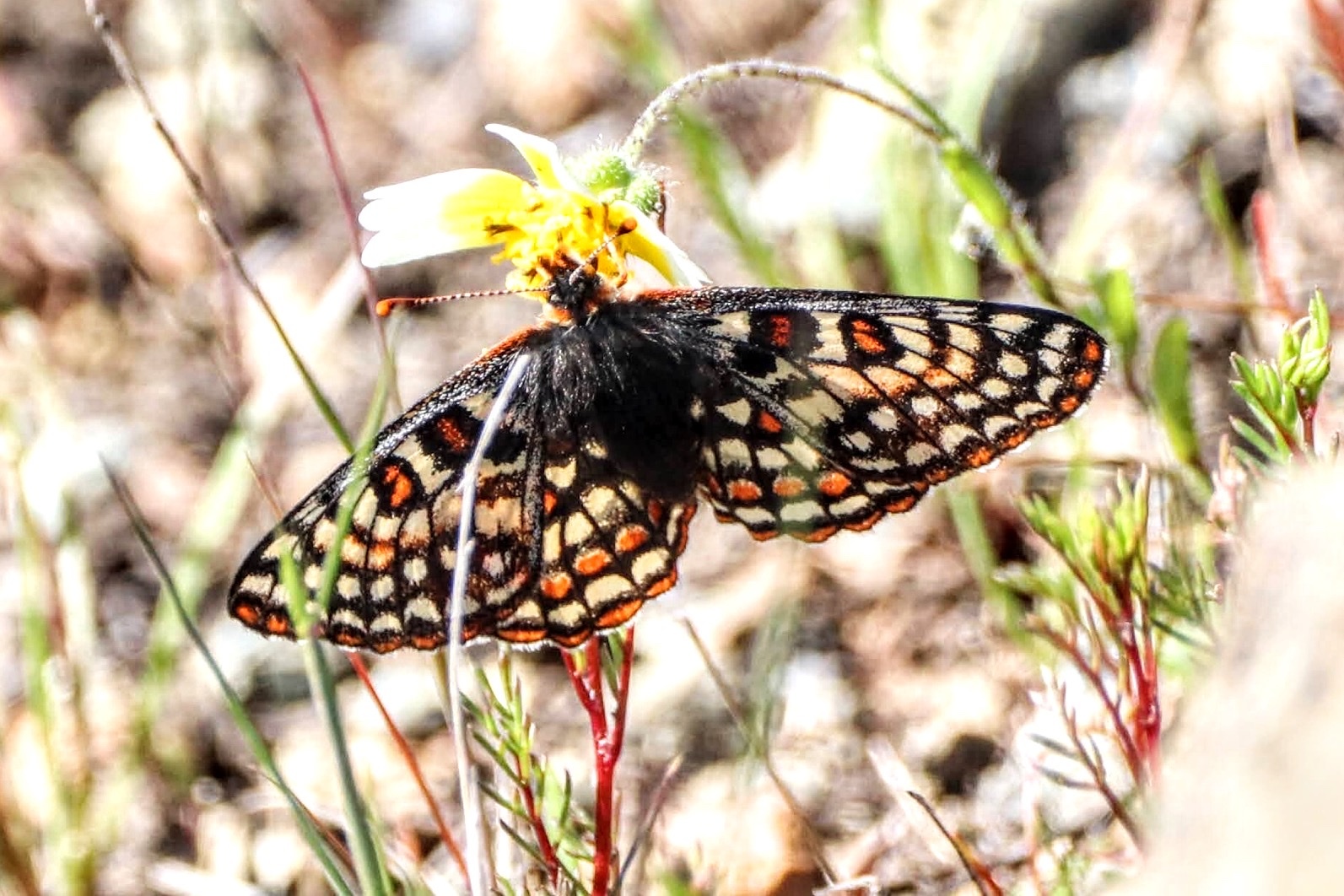 Occidryas editha | species | Layia | genus | eats | Animalia | Arthropoda | Insecta | Lepidoptera | Nymphalidae | Occidryas | Plantae | Tracheophyta | Magnoliopsida | Asterales | Asteraceae | Layia | 37.286212 | -121.704826 | 2021 | 3 | 20 | http://creativecommons.org/licenses/by-nc/4.0/ | https://www.inaturalist.org/observations/71678462 | |
