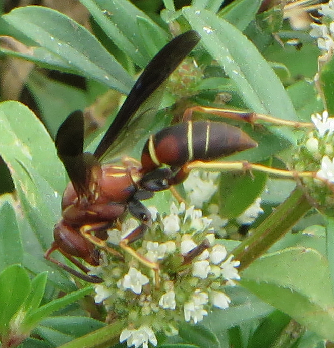 Polistes fuscatus | species | Spermacoce verticillata | species | visitsFlowersOf | Animalia | Arthropoda | Insecta | Hymenoptera | Eumenidae | Polistes | Plantae | Tracheophyta | Magnoliopsida | Gentianales | Rubiaceae | Spermacoce | 27.368132 | -80.486208 | 2021 | 3 | 20 | http://creativecommons.org/licenses/by/4.0/ | https://www.inaturalist.org/observations/71681245 | |