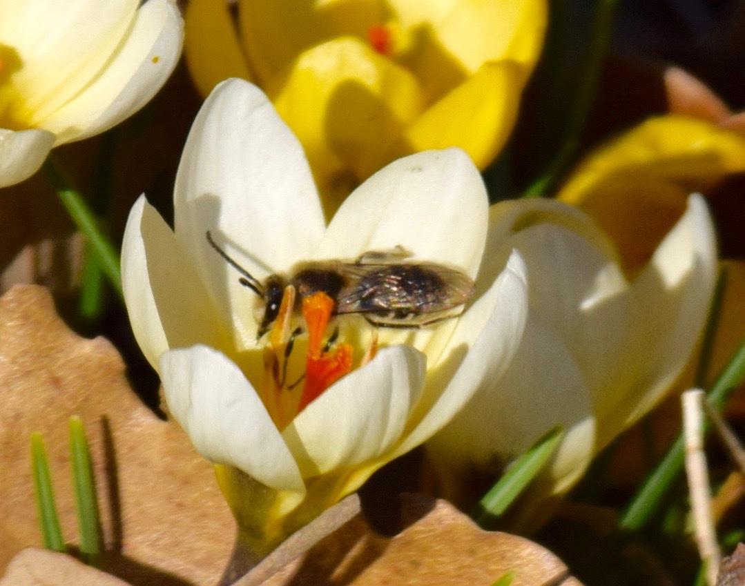 Colletes inaequalis | species | Crocus | genus | visitsFlowersOf | Animalia | Arthropoda | Insecta | Hymenoptera | Colletidae | Colletes | Plantae | Tracheophyta | Liliopsida | Asparagales | Iridaceae | Crocus | 40.211291 | -74.939584 | 2021 | 3 | 20 | http://creativecommons.org/licenses/by-nc/4.0/ | https://www.inaturalist.org/observations/71653500 | |