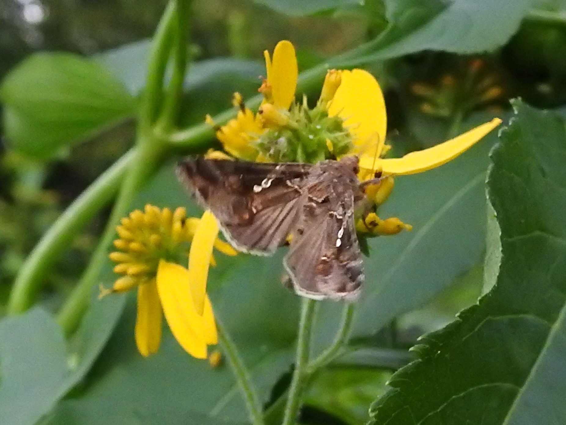 Chrysodeixis includens | species | Verbesina alternifolia | species | eats | Animalia | Arthropoda | Insecta | Lepidoptera | Noctuidae | Chrysodeixis | Plantae | Tracheophyta | Magnoliopsida | Asterales | Asteraceae | Verbesina | 39.271627 | -84.428231 | 2018 | 10 | 9 | http://creativecommons.org/licenses/by-nc/4.0/ | https://www.inaturalist.org/observations/71401090 | |