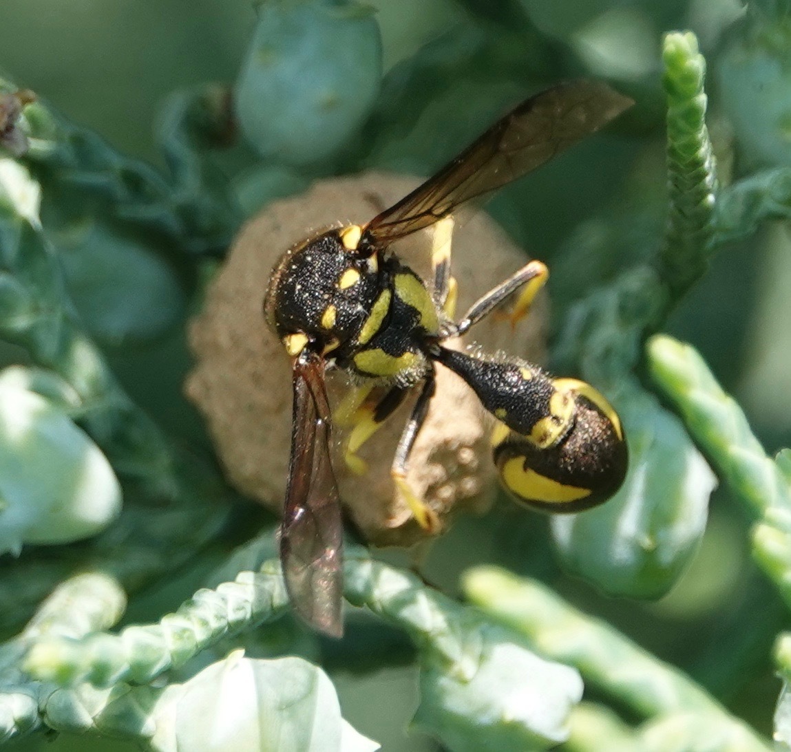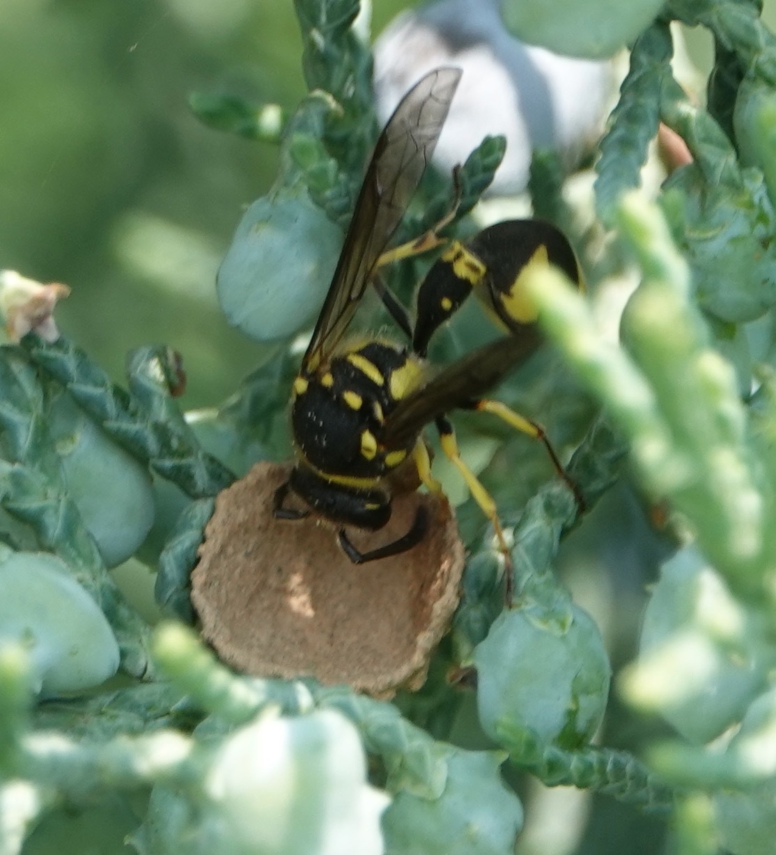 Eumenes mediterraneus | species | Cupressaceae | family | visits | Animalia | Arthropoda | Insecta | Hymenoptera | Vespidae | Eumenes | Plantae | Tracheophyta | Pinopsida | Pinales | Cupressaceae | null | 40.656615 | -73.994851 | 2023 | 5 | 24 | http://creativecommons.org/licenses/by-nc/4.0/ | https://www.inaturalist.org/observations/163568508 | |