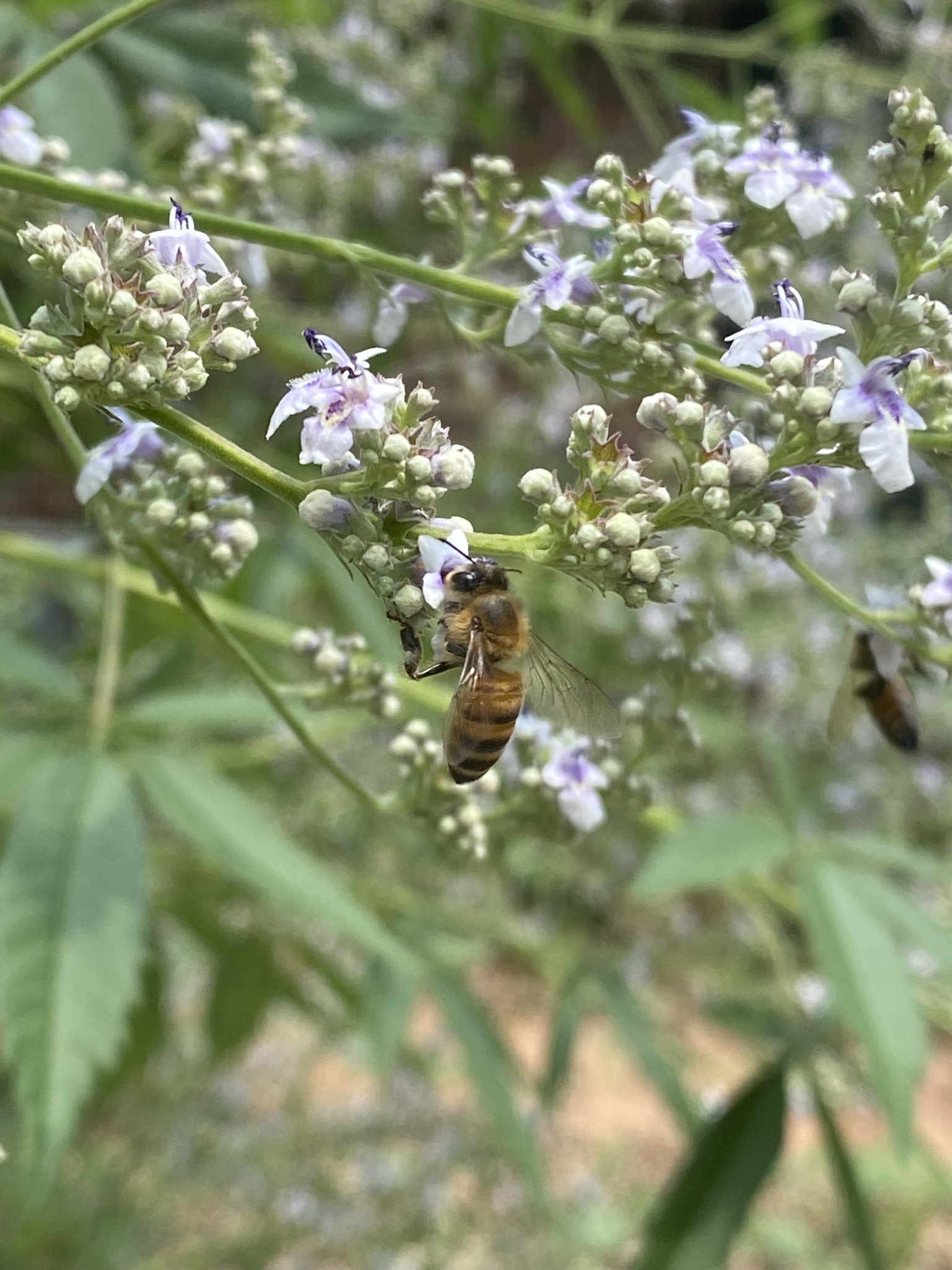 Apis mellifera | species | Vitex negundo | species | eats | Animalia | Arthropoda | Insecta | Hymenoptera | Apidae | Apis | Plantae | Tracheophyta | Magnoliopsida | Lamiales | Lamiaceae | Vitex | 33.02389 | -97.145727 | 2023 | 5 | 24 | http://creativecommons.org/licenses/by-nc/4.0/ | https://www.inaturalist.org/observations/163568667 | |