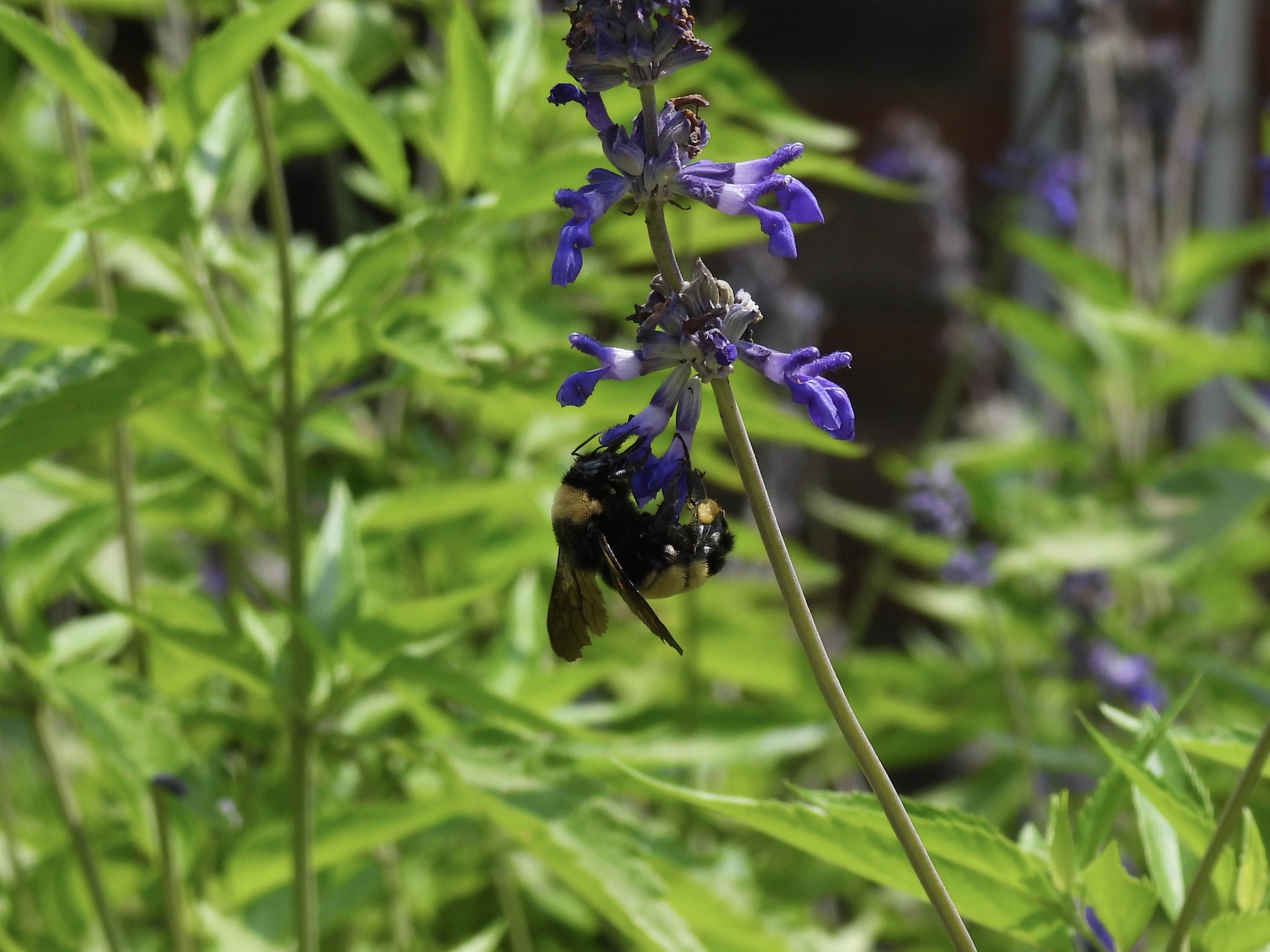 Bombus pensylvanicus | species | Salvia farinacea | species | eats | Animalia | Arthropoda | Insecta | Hymenoptera | Apidae | Bombus | Plantae | Tracheophyta | Magnoliopsida | Lamiales | Lamiaceae | Salvia | 33.02389 | -97.145727 | 2023 | 5 | 24 | http://creativecommons.org/licenses/by-nc/4.0/ | https://www.inaturalist.org/observations/163568679 | |